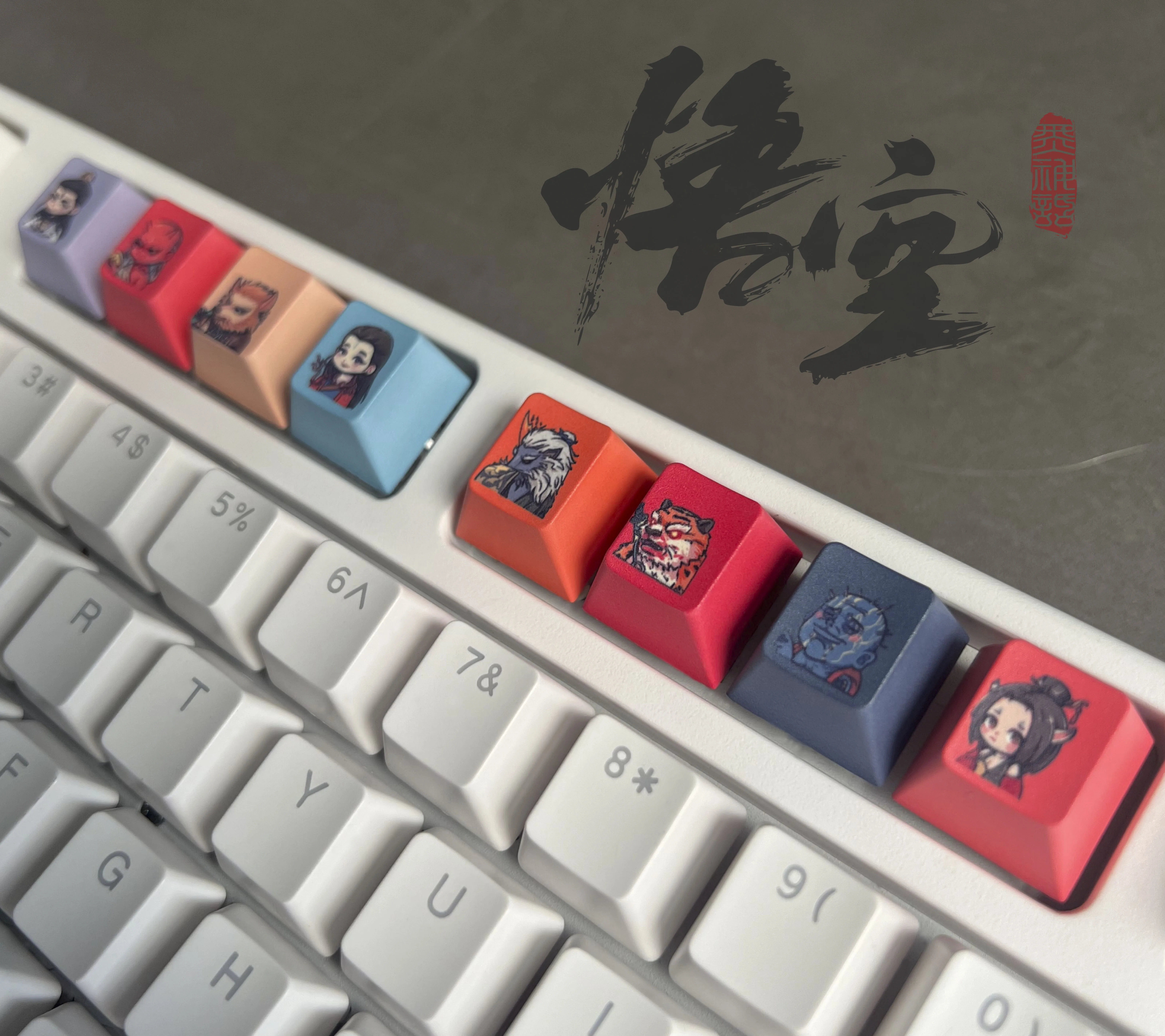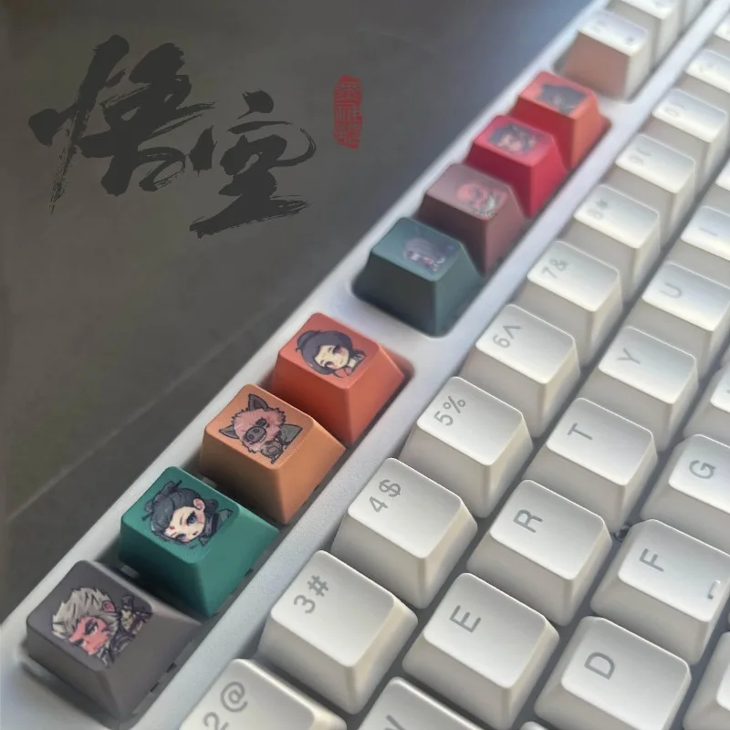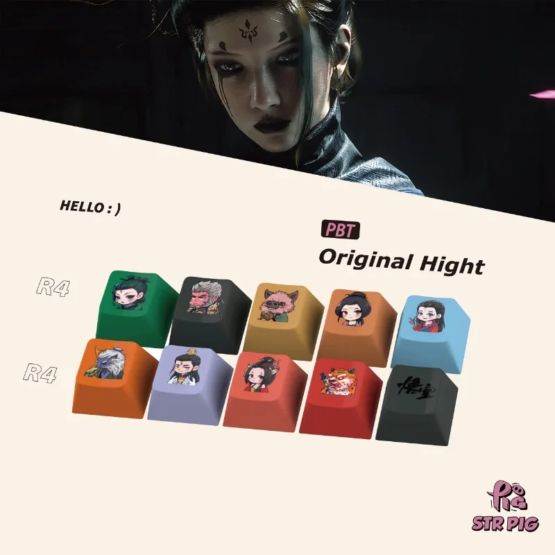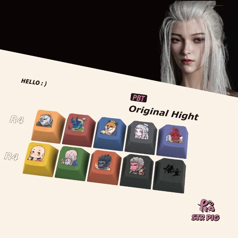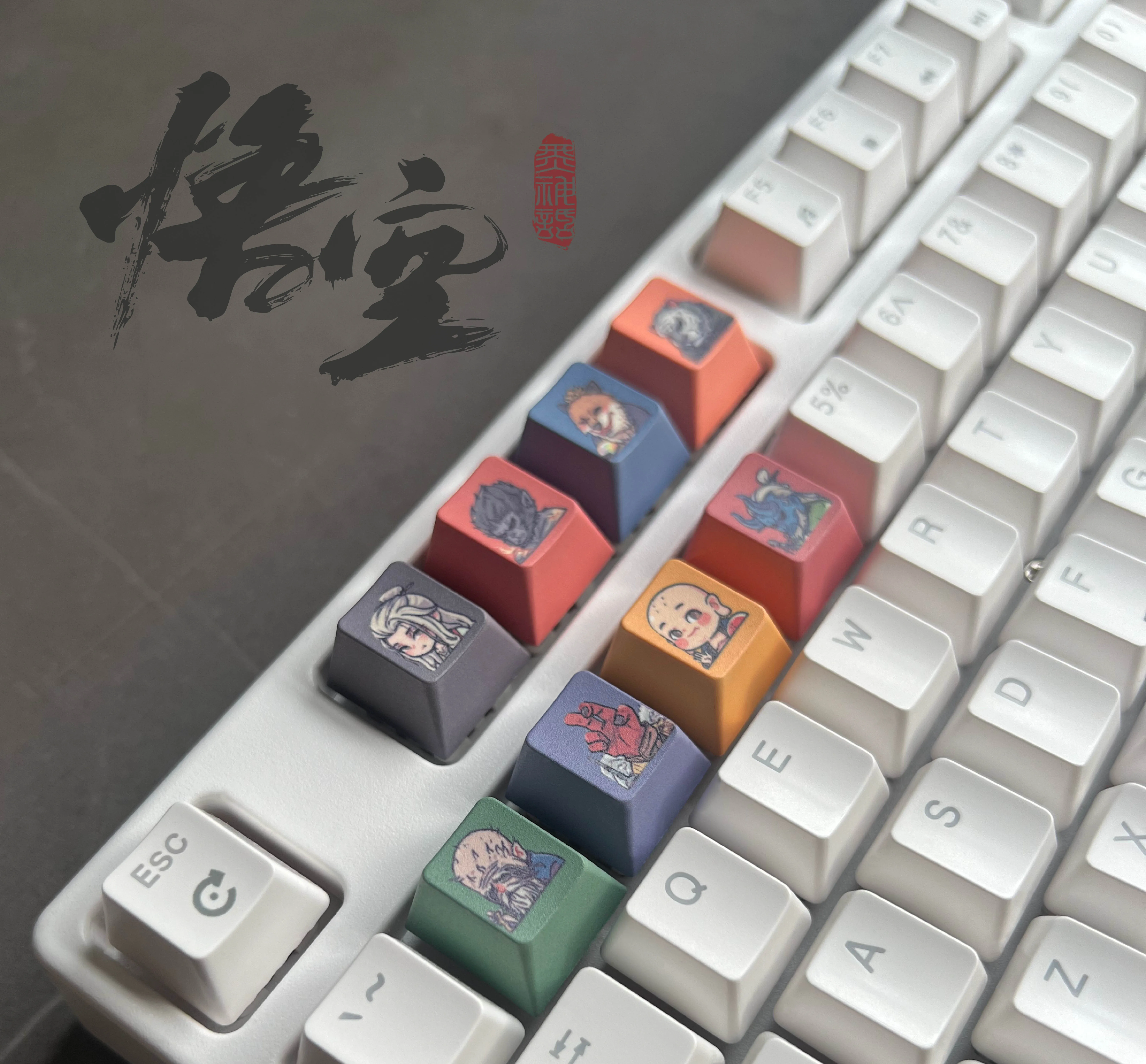 Mesto negro: conjunto de teclas temáticas Wukong, retrato de grupo personalizado, tapa de tecla artesanal para juegos, PBT, 8 teclas, interruptor MX de Anime, tecla de perfil Cherry