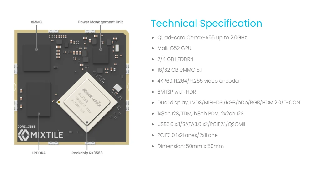 Comprar Mixtile Core 3568 diseñado para admitir múltiples aplicaciones basadas en los procesadores ARM de alto rendimiento y bajo consumo.
