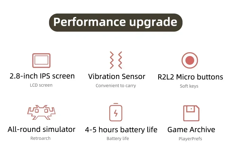 Sensor de vibración de pantalla IPS de 2,8 pulgadas R2L2 Micro botones Simulador redondo 5-6 horas de duración de la batería
