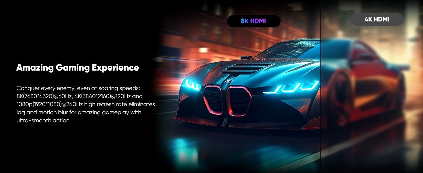 【Para entusiastas del juego】Este cable HDMI de ultra alta velocidad de 8K puede lograr una imagen súper fluida de 4K a 120HZ.Su último modo de juego admite una frecuencia de actualización variable, maximiza el valor de la tarjeta gráfica y la CPU para obtener una imagen más fluida y detallada.