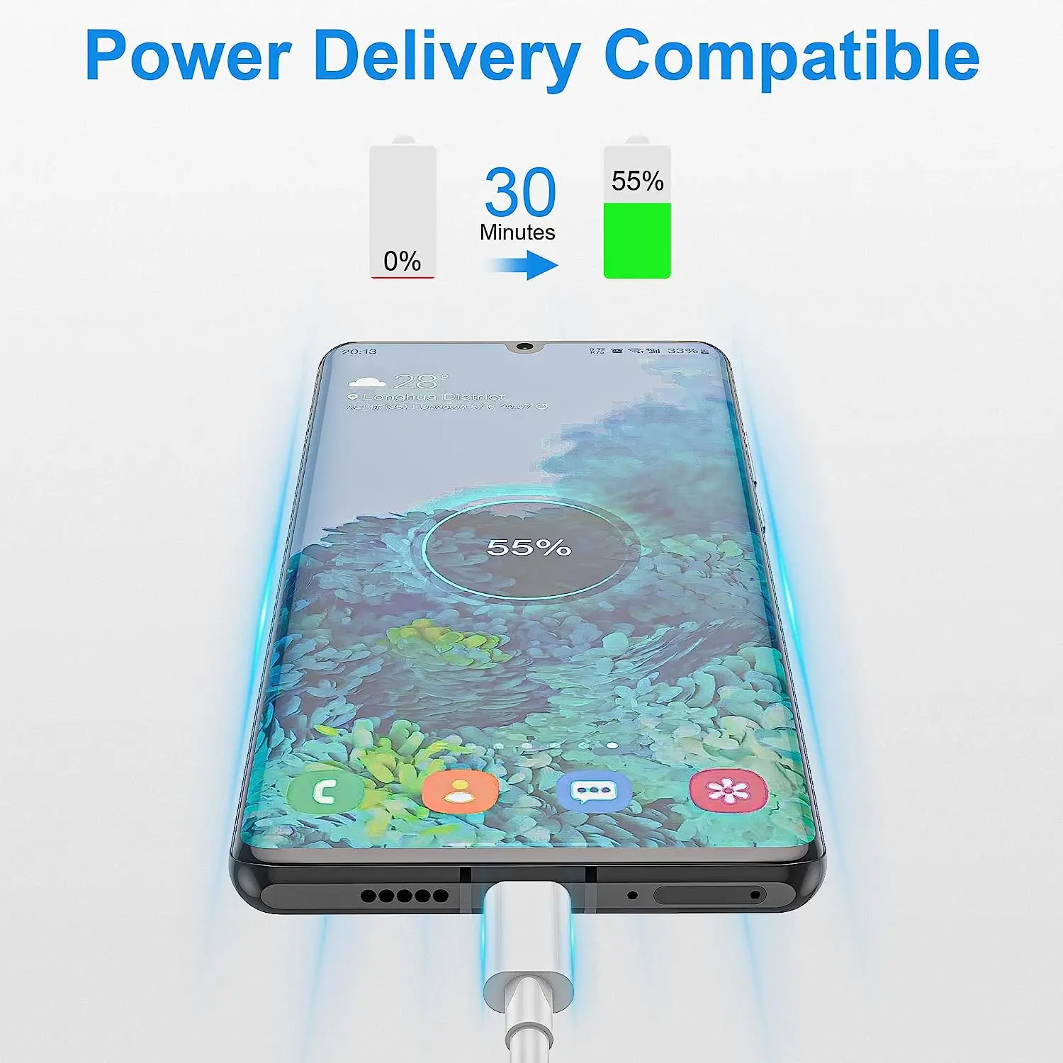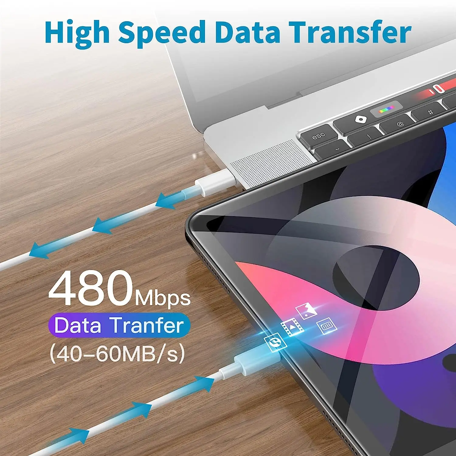 permitiendo que su dispositivo se cargue hasta un 75% en 30 minutos.USB 2.0 admite velocidades de transferencia de datos de hasta 480 Mbps, lo que lo convierte en un cable de datos muy práctico.