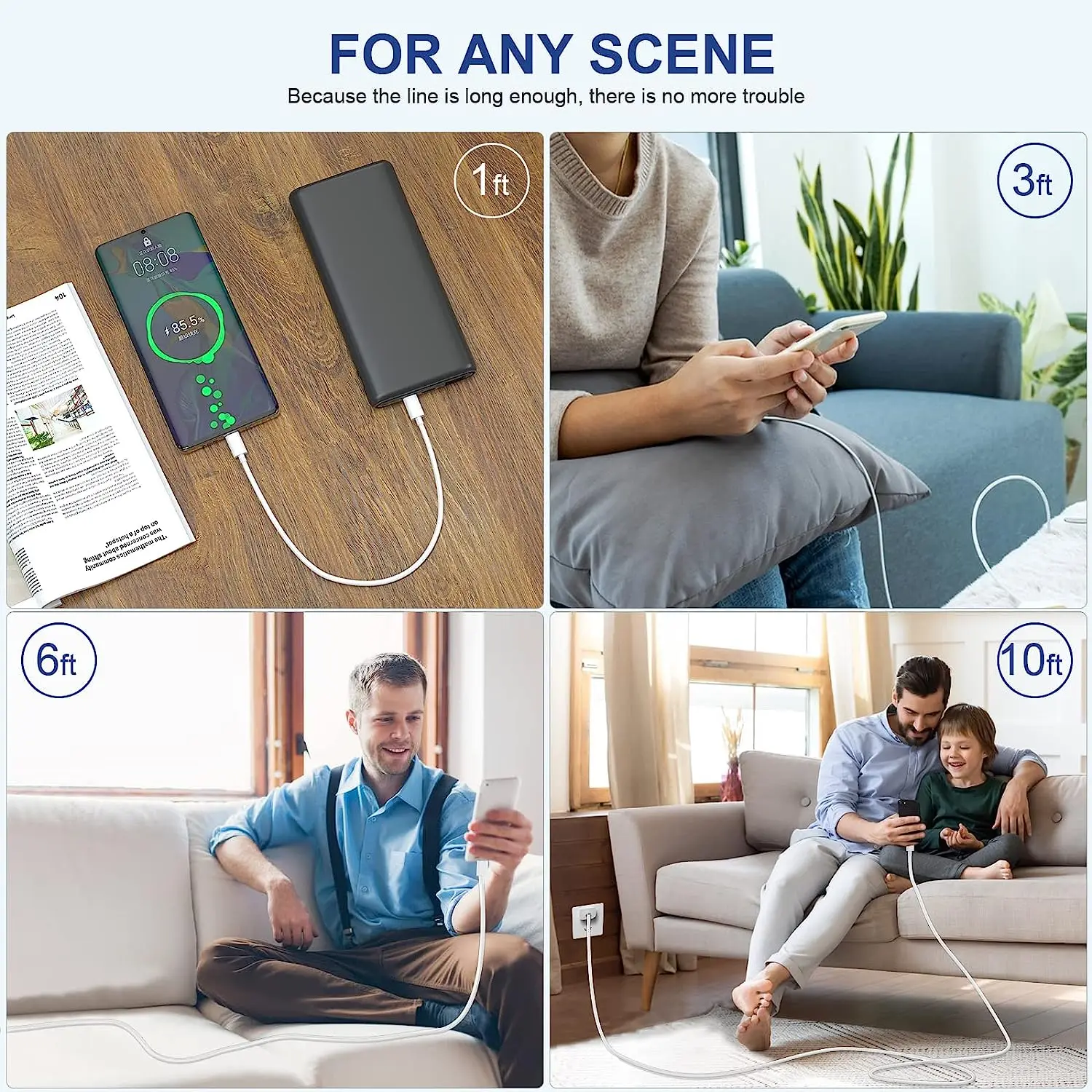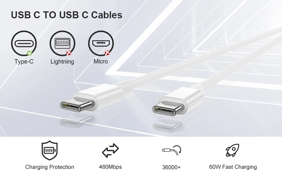 El cable está hecho de material de alta calidad con buena textura y el diseño especial para aliviar el estrés puede soportar más de 36000 pruebas de flexión, lo que puede soportar un uso prolongado sin preocuparse por daños debido a la flexión o el impacto.