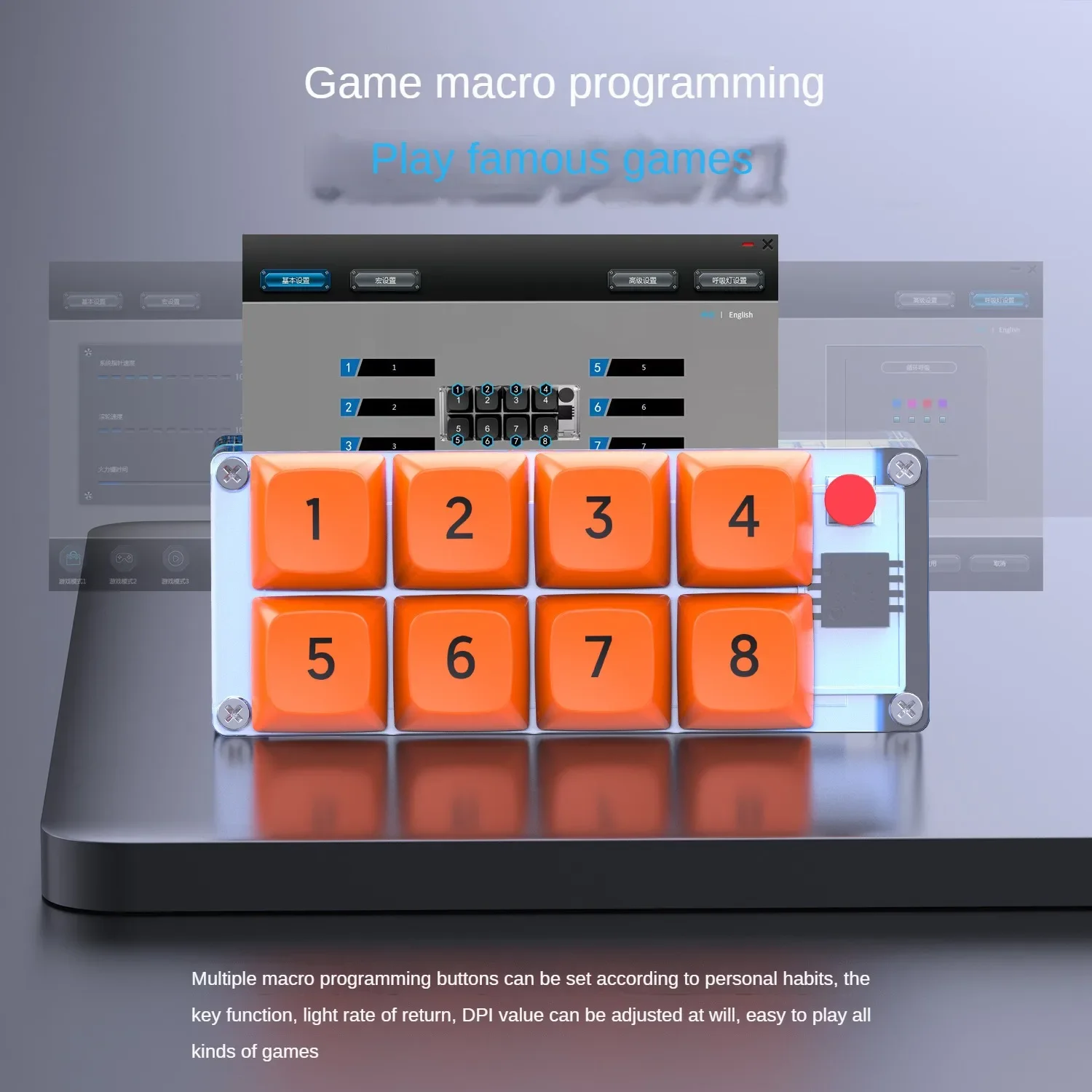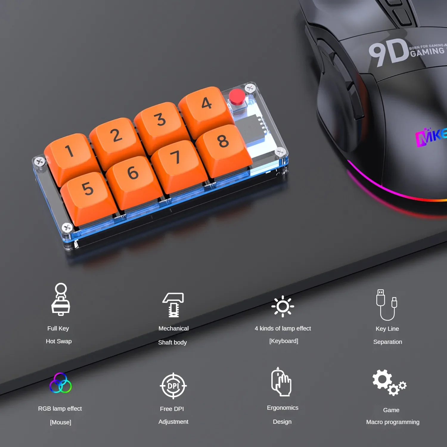 MKESPN K806 RGB programación Teclado mecánico personalizado y ratón para juegos Combo 8 teclas copia pasta Mini teclado para Photoshop