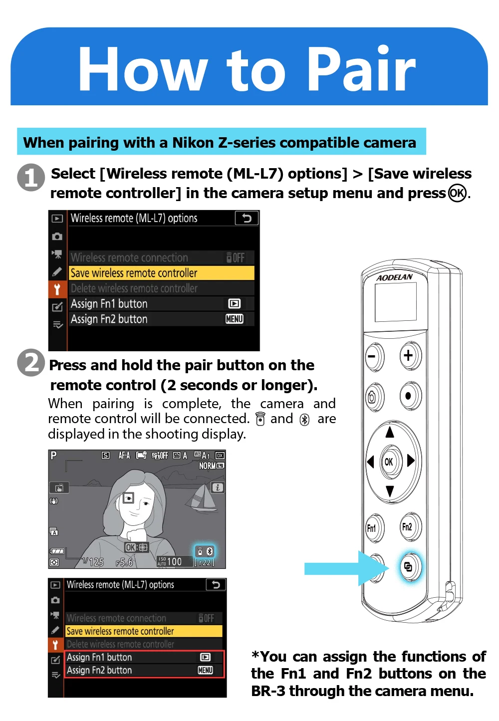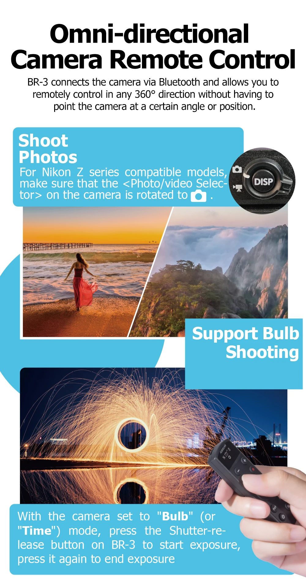 ML-L7 Trípode de agarre de obturador remoto recargable inalámbrico para Nikon A1000, B600, P1000, P950, Z6III, Z30, Z50II, Zfc, Z5