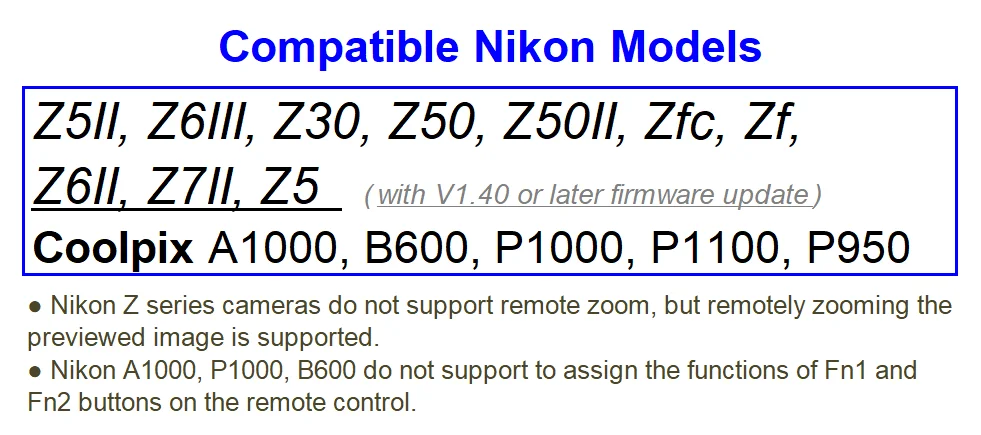 Comprar ML-L7 USB-C Control remoto inalámbrico disparador para Nikon Z5II Z6III Z30 Z50 Z50II Zfc Zf Z6II Z7II Z5 A1000 P1000 P1100