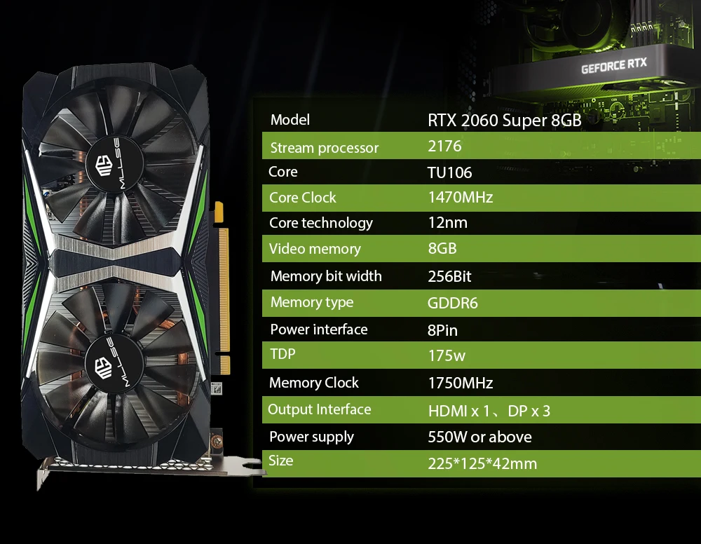 Comprar MLLSE-Placa De vídeo NVIDIA GeForce RTX 2023, Super 8GB, tarjeta gráfica GDDR6 De 2060 bits, GPU, para videojuegos, 256