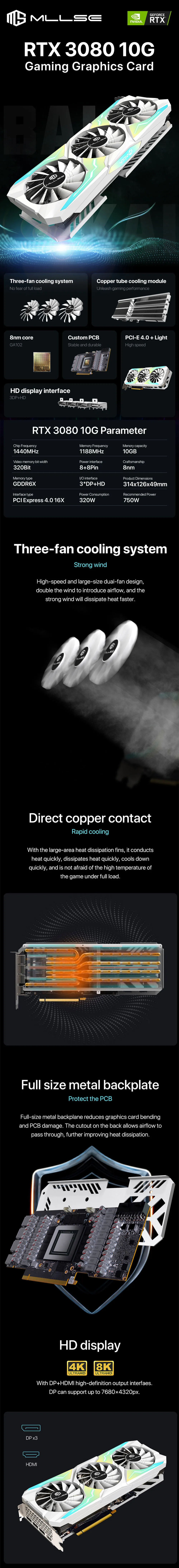 Comprar MLLSE-tarjeta gráfica RTX 3080, 10GB, GDDR6X, 320 bits, PCI-E, 4,0 × 16, 8 + 8 pines, NVIDIA, GPU, RGB, iluminación para videojuegos, Placa De vídeo