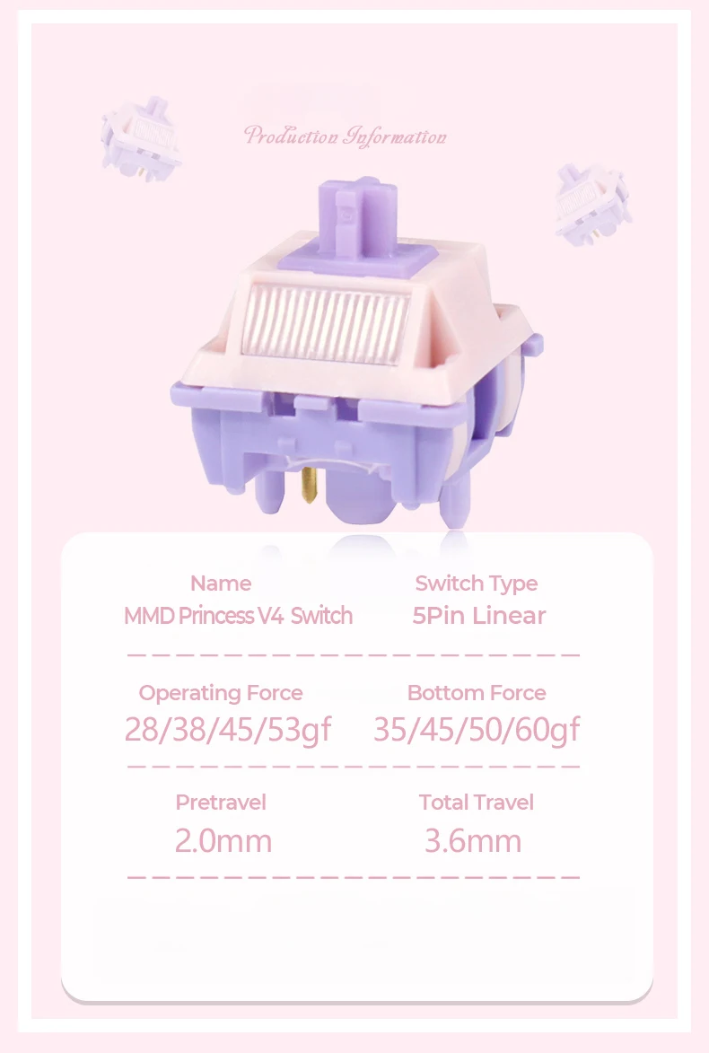 Comprar MMD Princess Switch V4 lineal RGB SMD 5pin 28g 38g 45g 48g 53g 62g para teclado mecánico PC PA66 LY HIFI LY prelubrado de fábrica