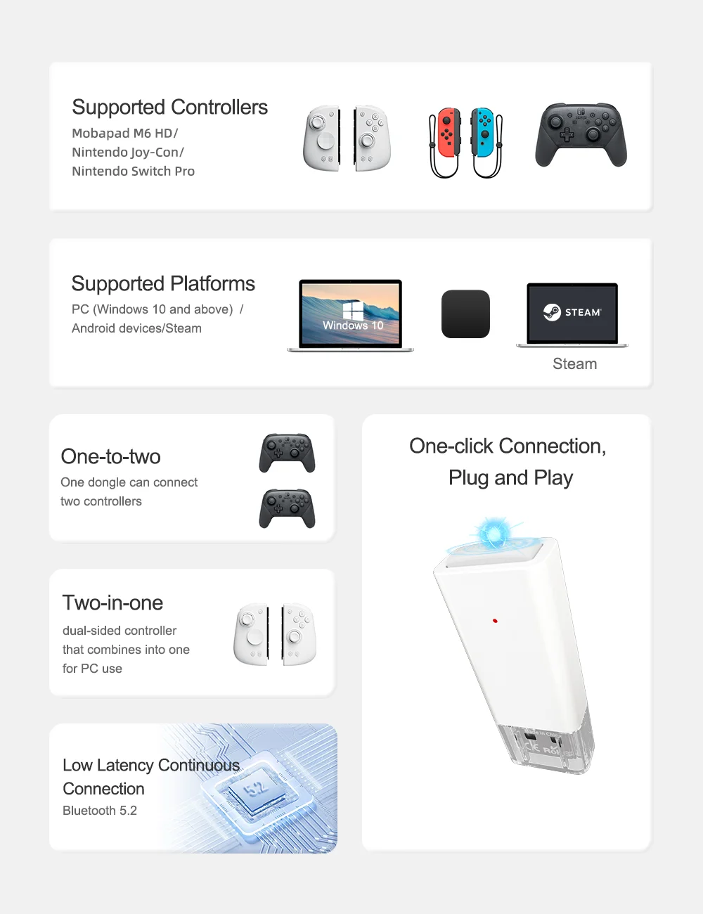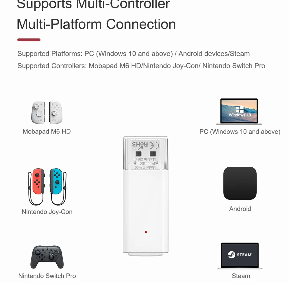 Comprar MOBAPAD-adaptador inalámbrico 2 en 1, receptor de controlador de M6 Mobapad para Windows 10/11, Android Steam