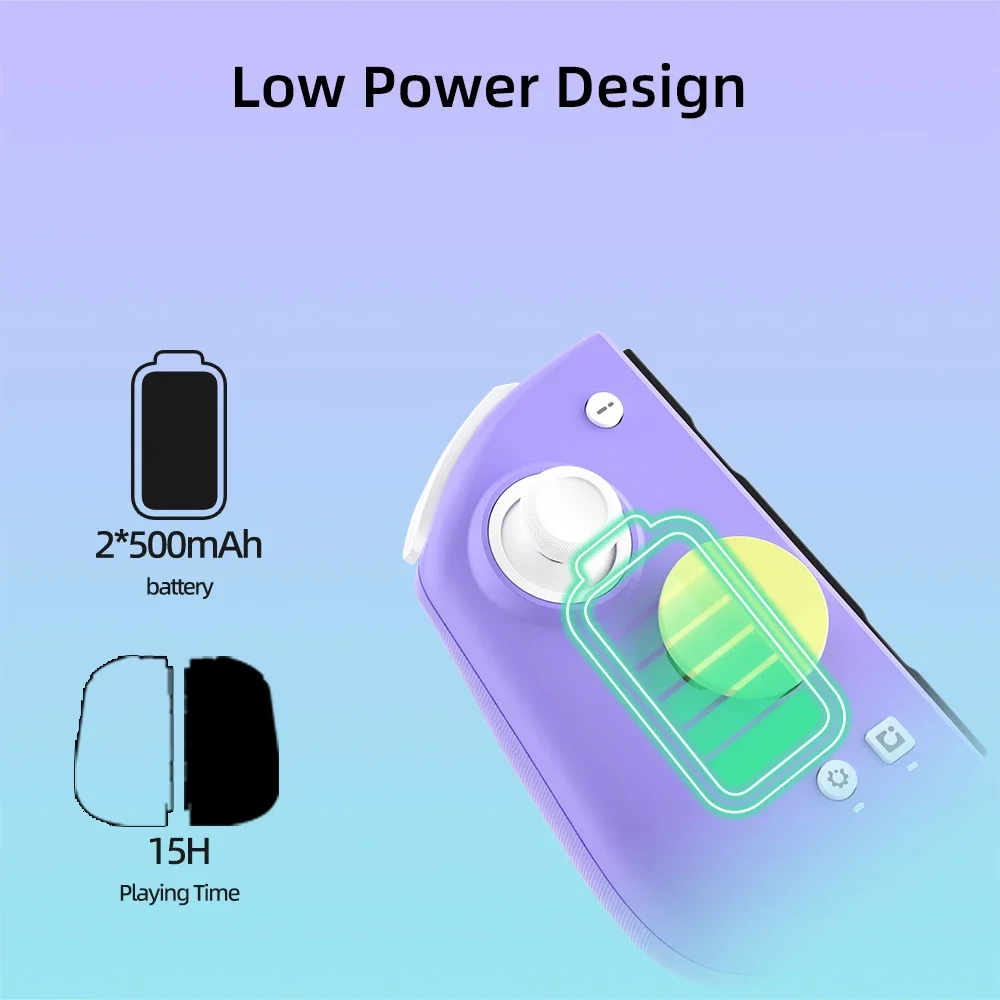 El consumo de energía en espera M6S se reduce significativamente, con un autoconsumo de 7 microamperios. En comparación con los 100 microamperios de Joy-Con y los 10 miliamperios de M6, minimiza drásticamente el impacto del modo de espera en la batería de la consola. Cada lado tiene una batería de 500 miliamperios, que proporciona aproximadamente 15 horas de duración de la batería.