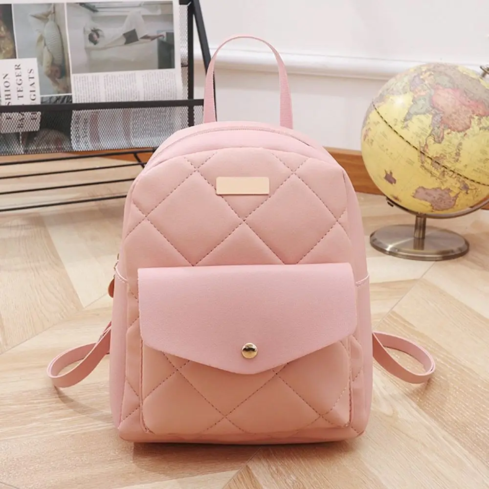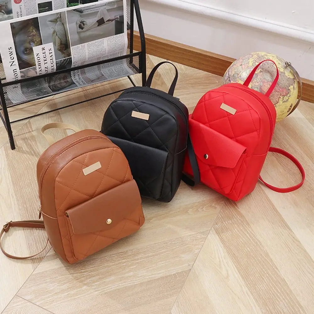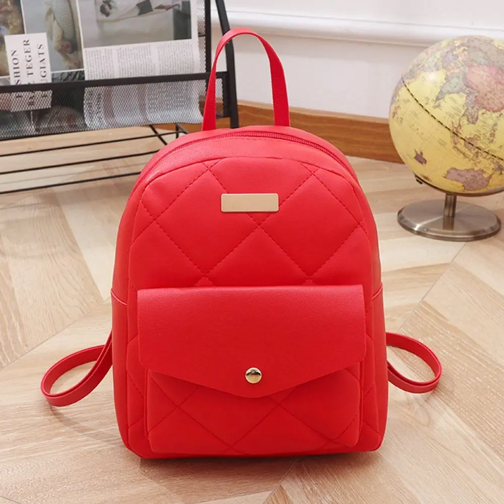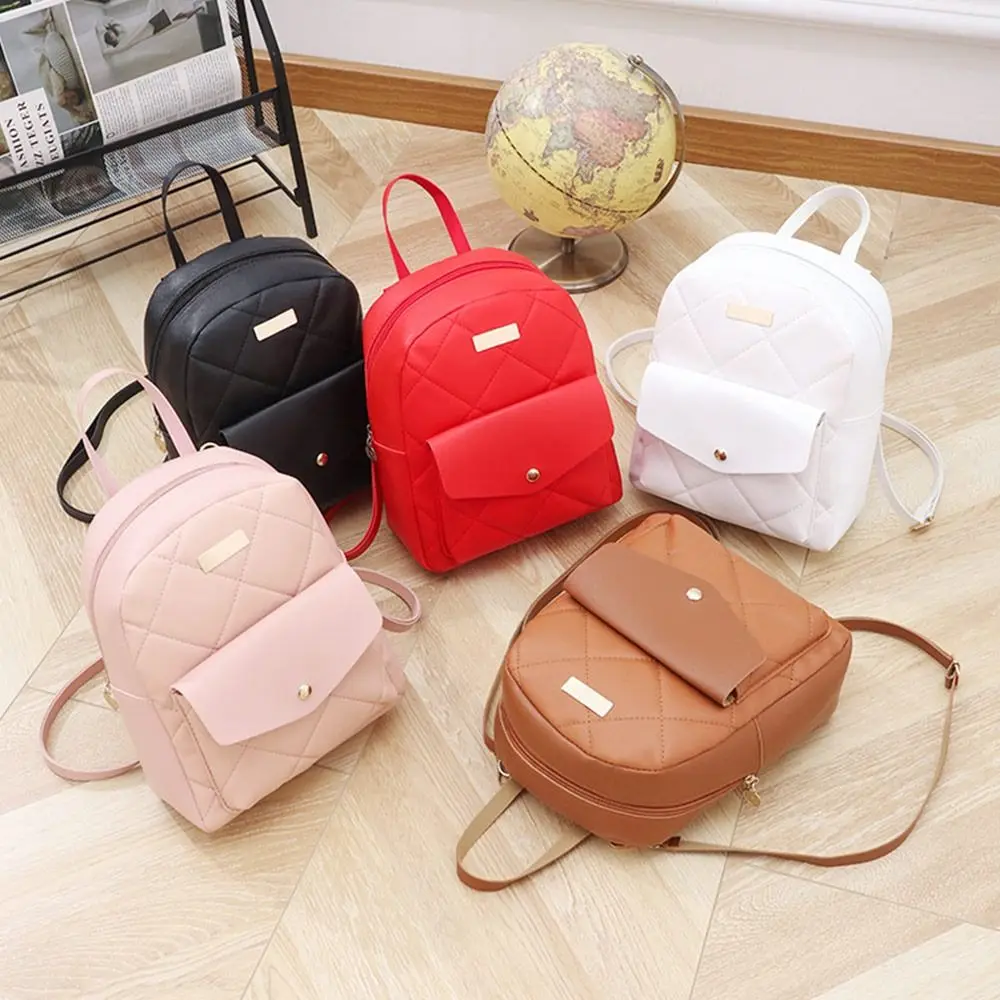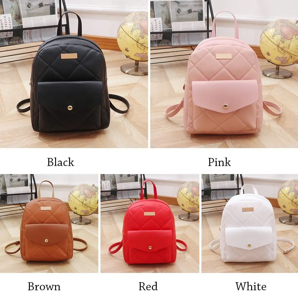 Comprar Mochila pequeña de cuero PU para mujer, bolso de hombro con rejillas de diamantes, Mini bolsos escolares informales