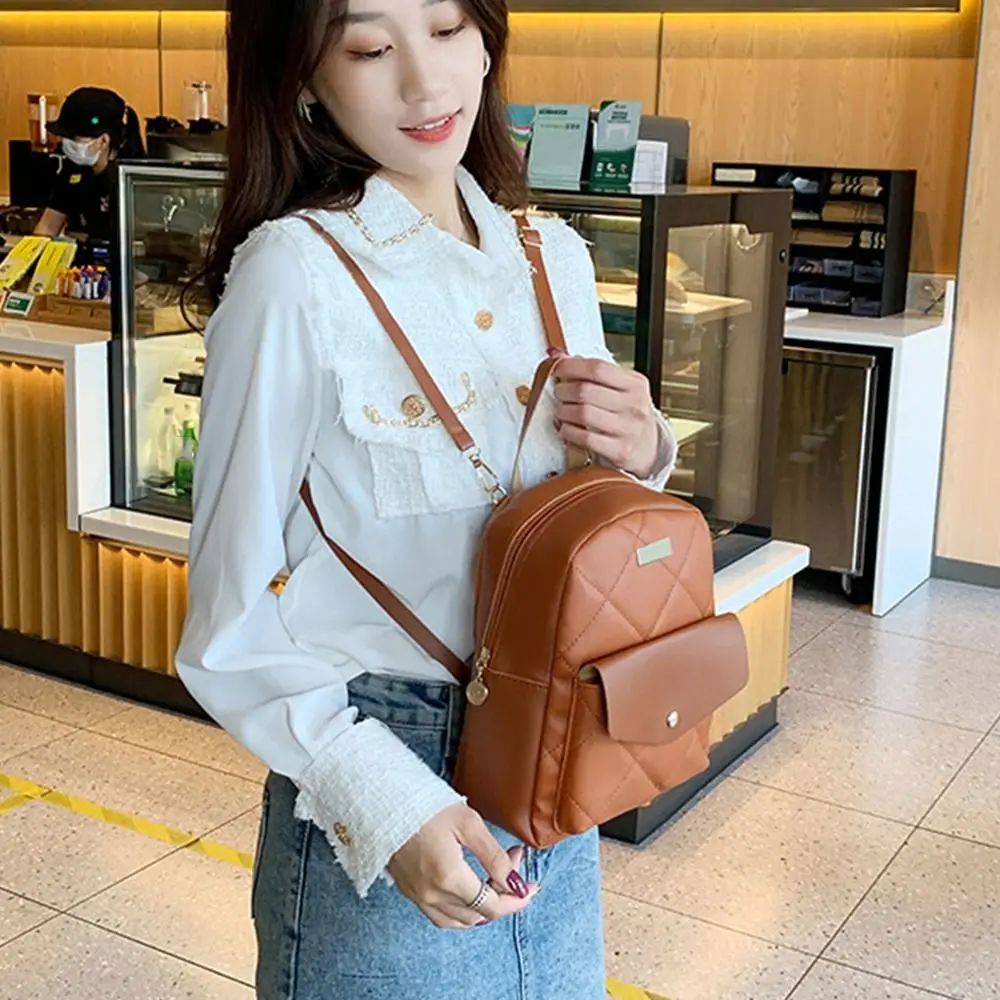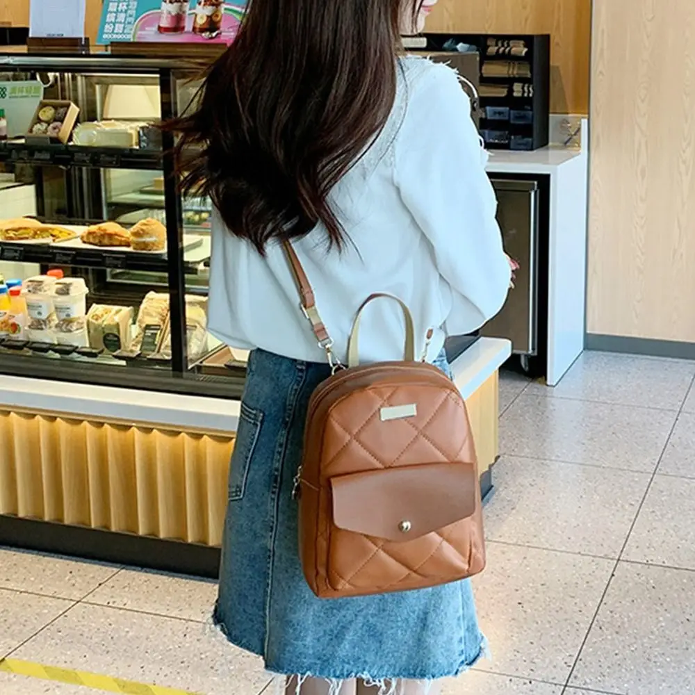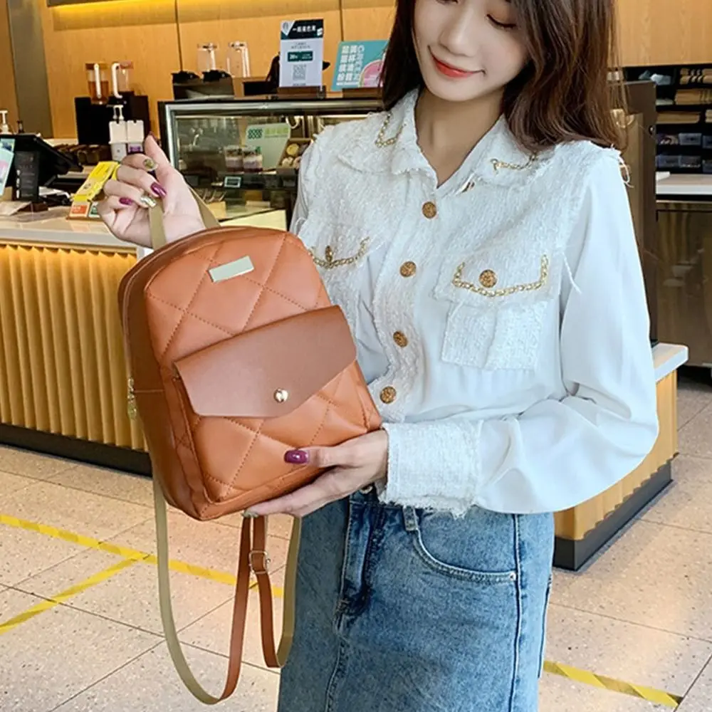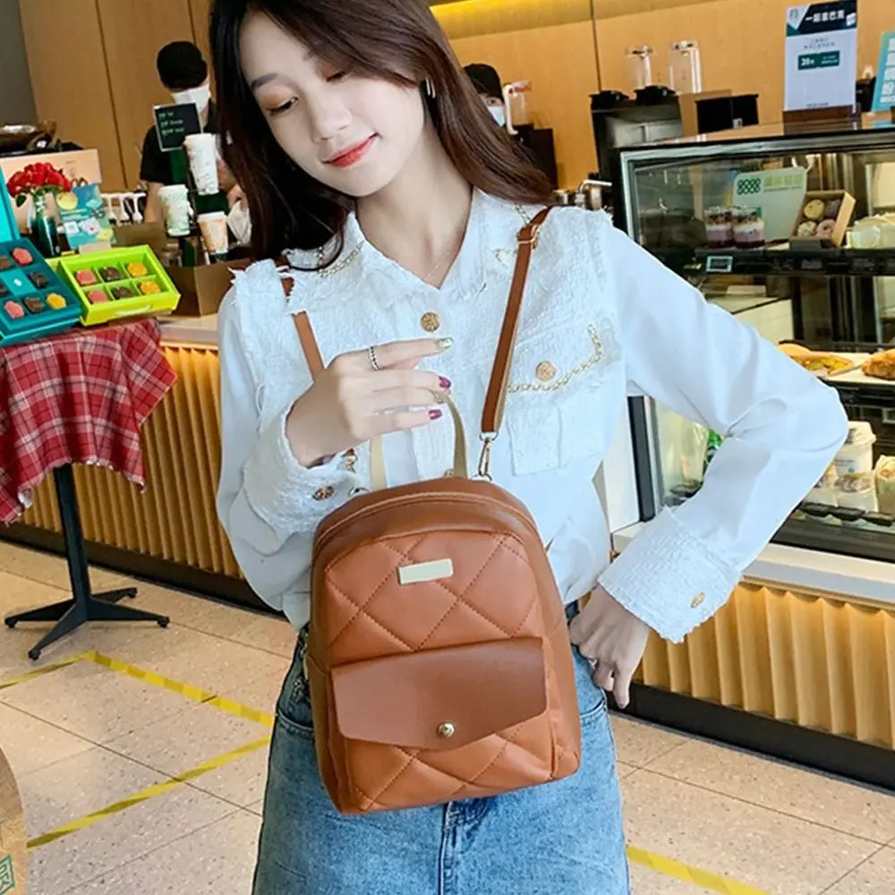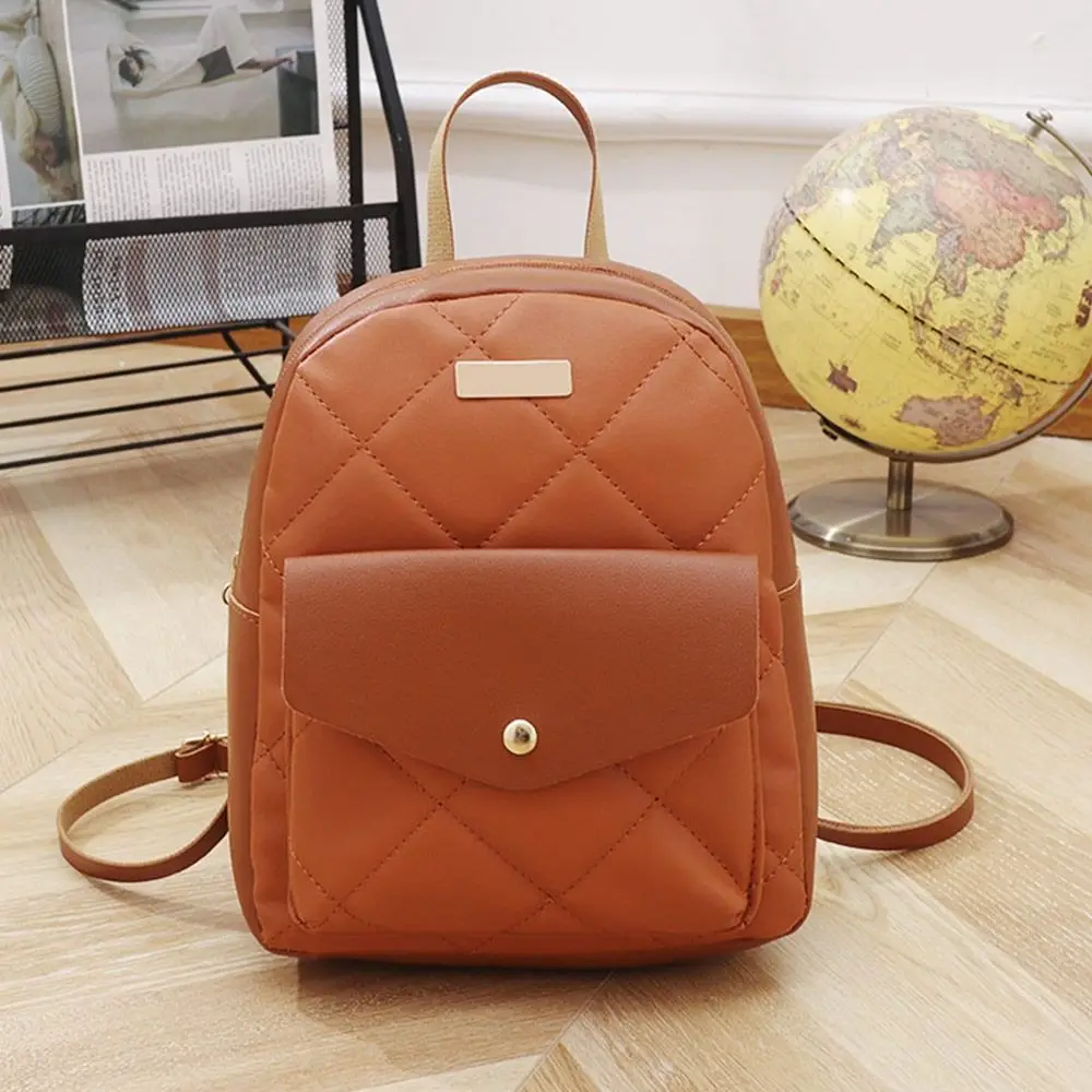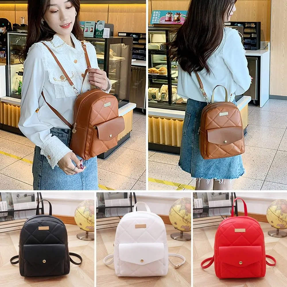 Comprar Mochila pequeña de cuero PU para mujer, bolso de hombro con rejillas de diamantes, Mini bolsos escolares informales