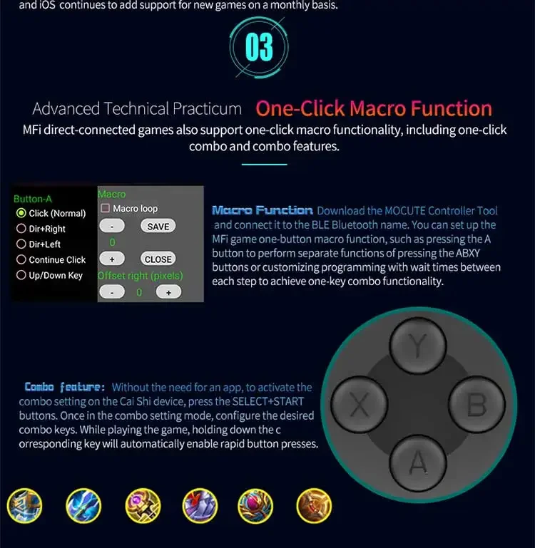 3.Función Macro con un clic:Función macro con un clic, conecta directamente botones personalizados, combinación de mapa para hacer clic, admite múltiples salas de juegos.