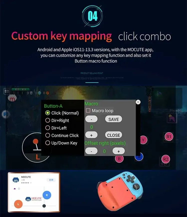 Comprar Mocute 061 inalámbrico Bluetooth izquierda derecha controlador de juego dividido tipo C juegos portátil Joystick Gamepads para Android IOS para PC
