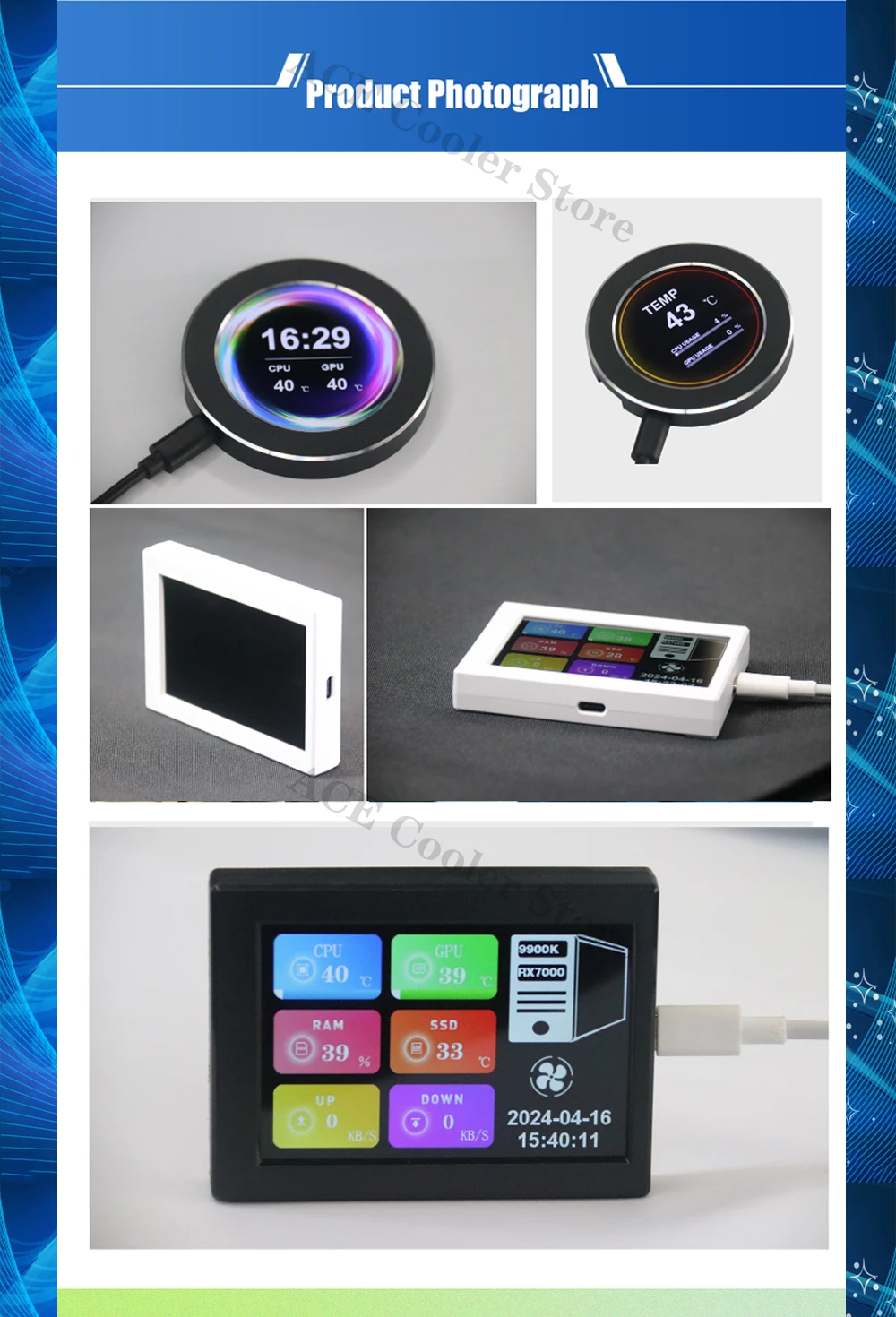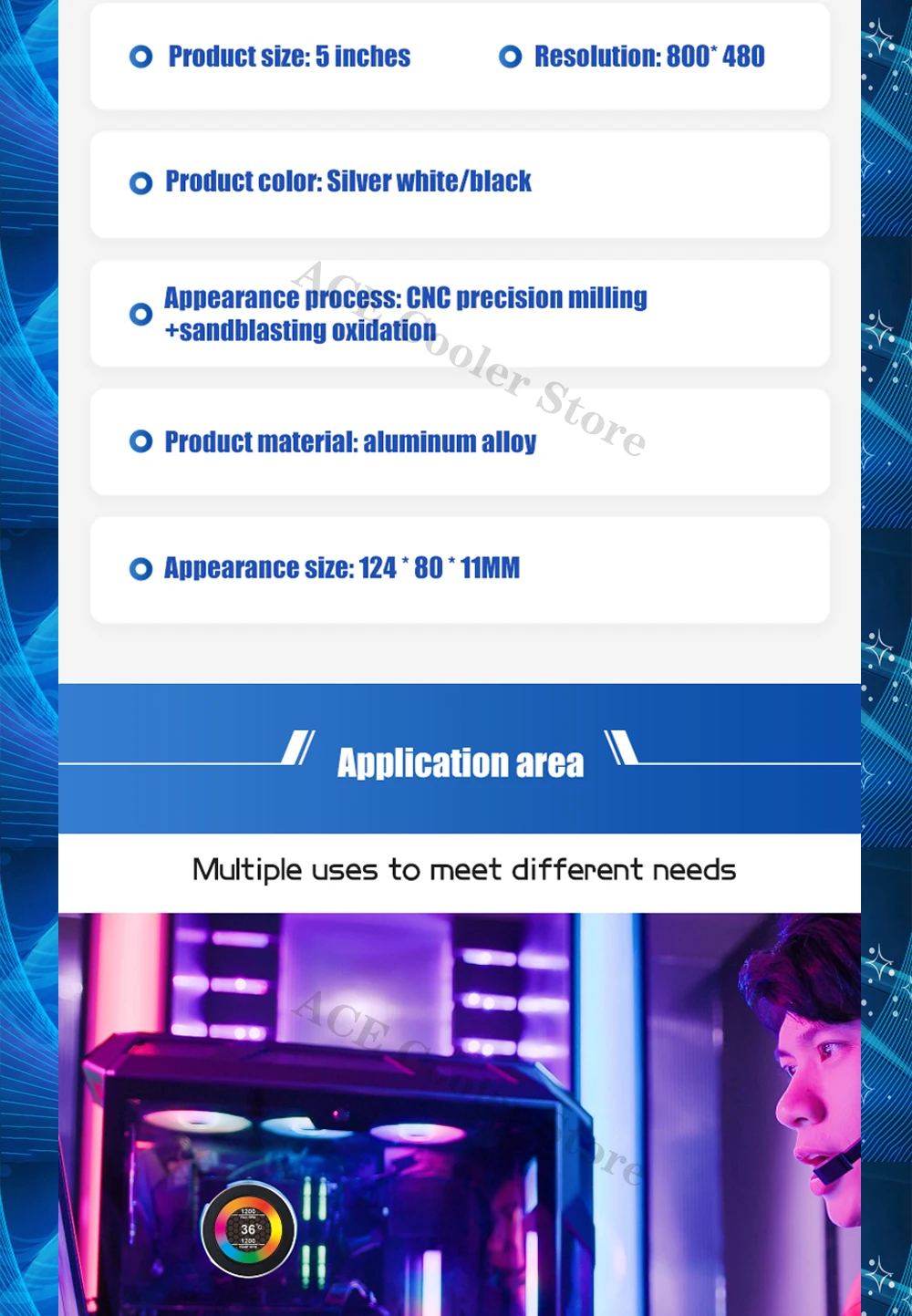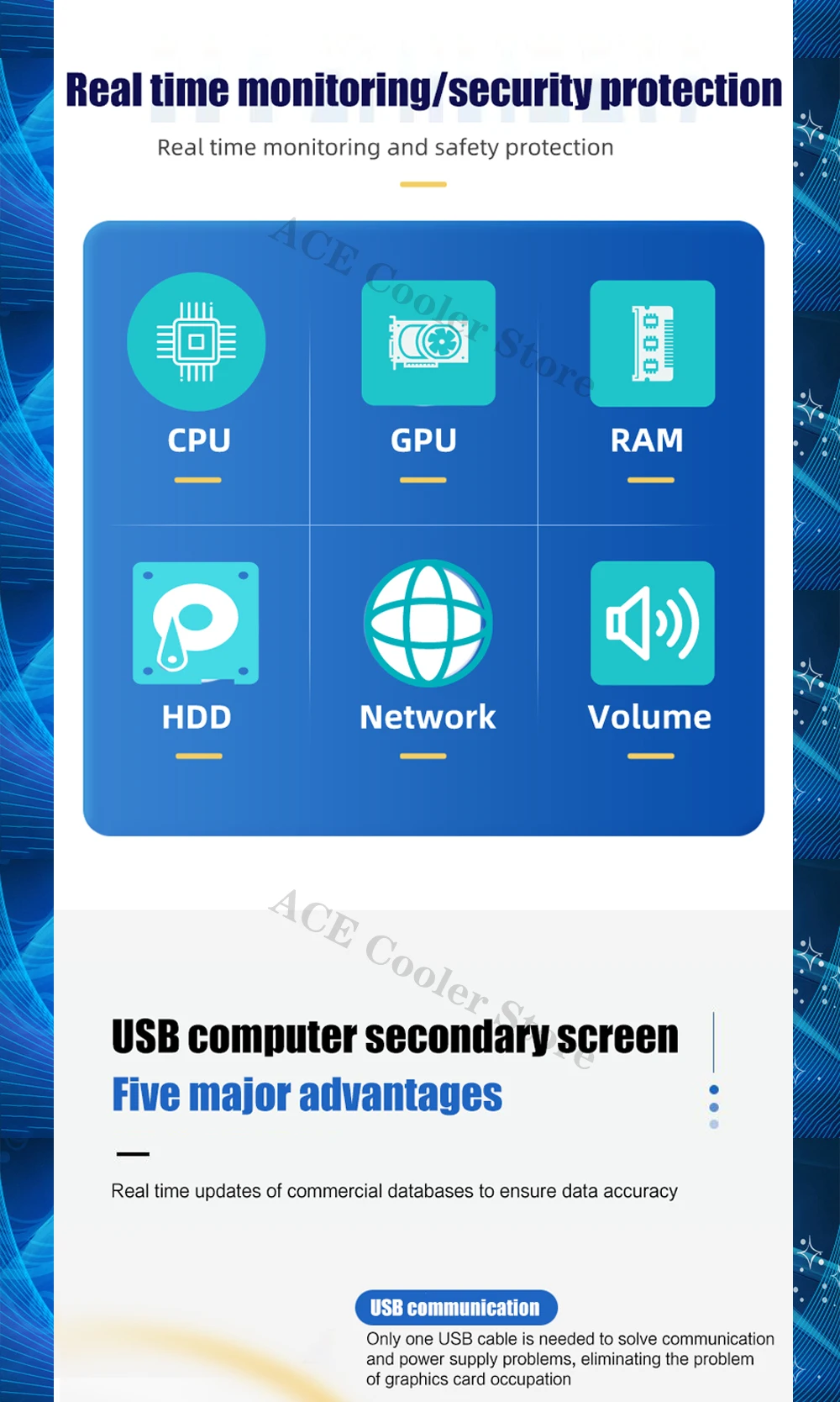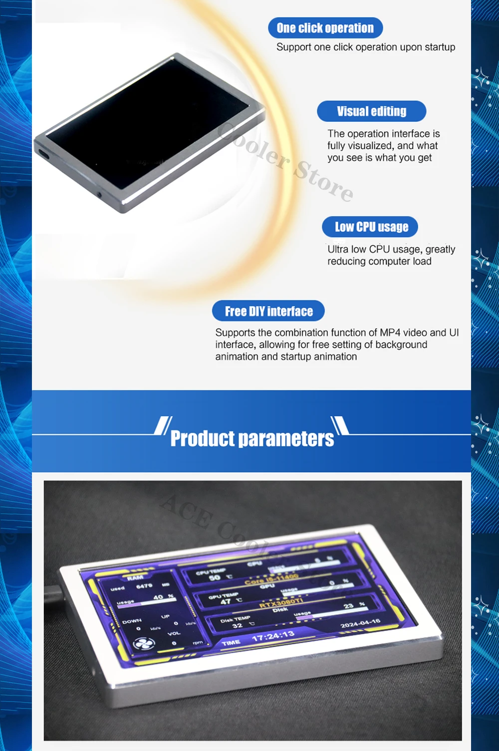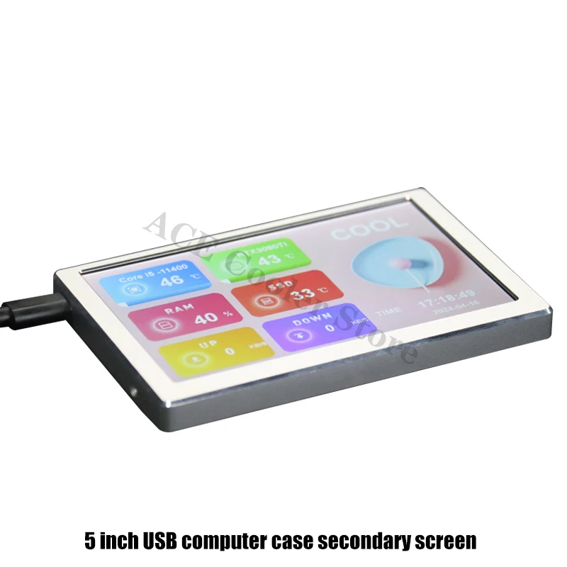 Comprar MOD Monitor de gabinete de PC de 5 pulgadas para Hardware de computadora, monitoreo de datos en funcionamiento, soporte conectado UBS tipo C, CPU, GPU, lectura de RAM