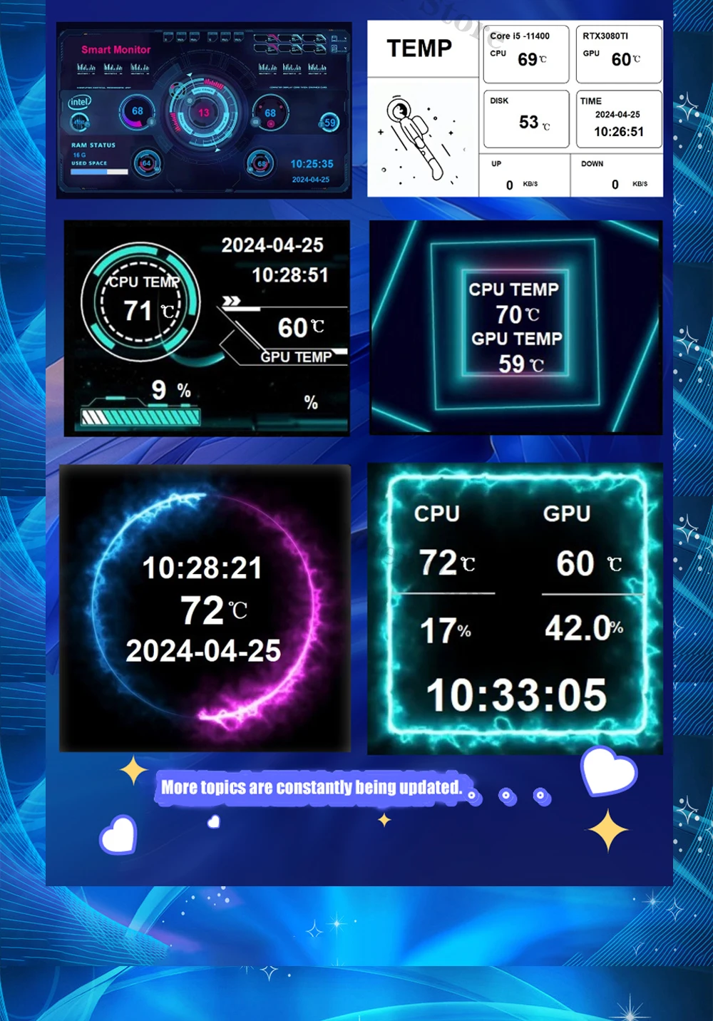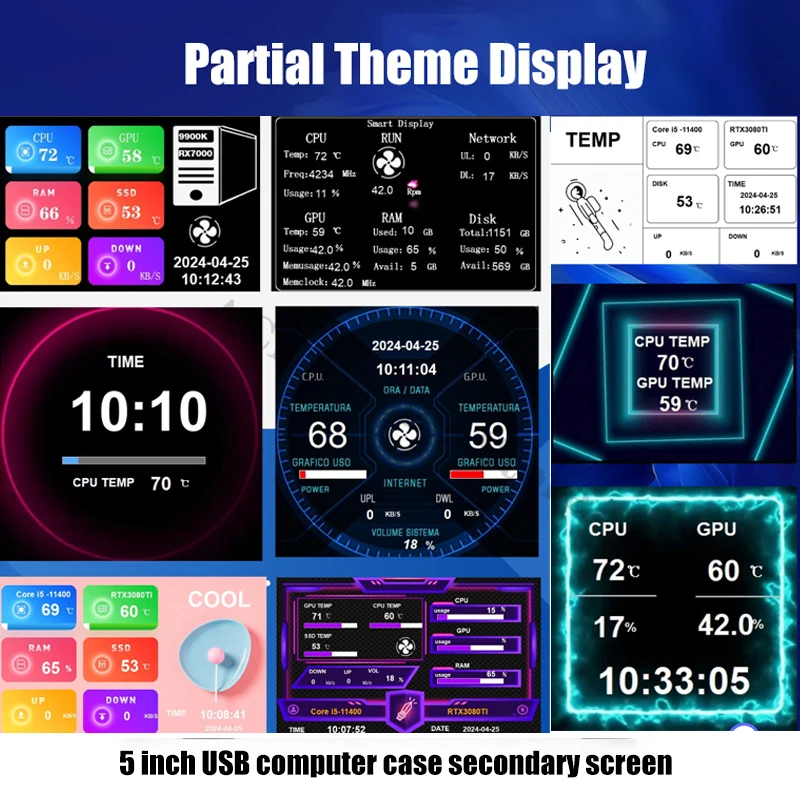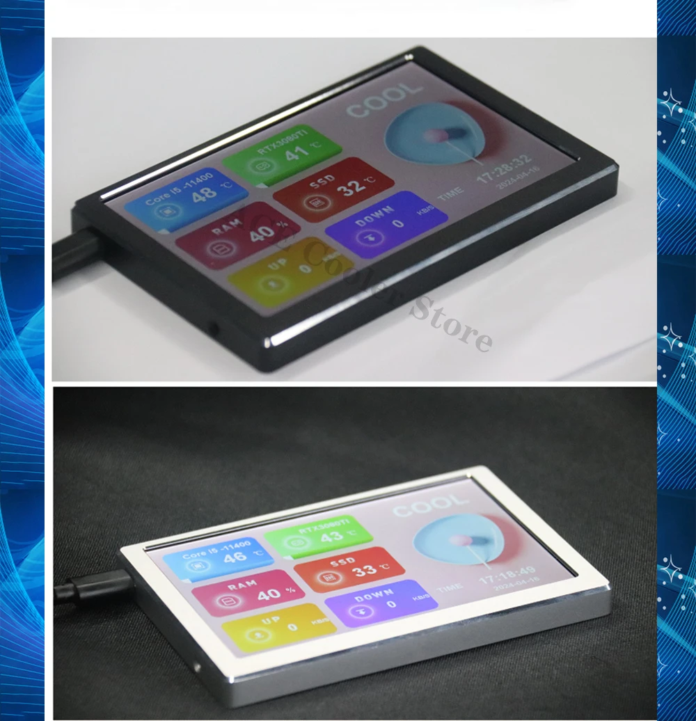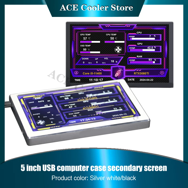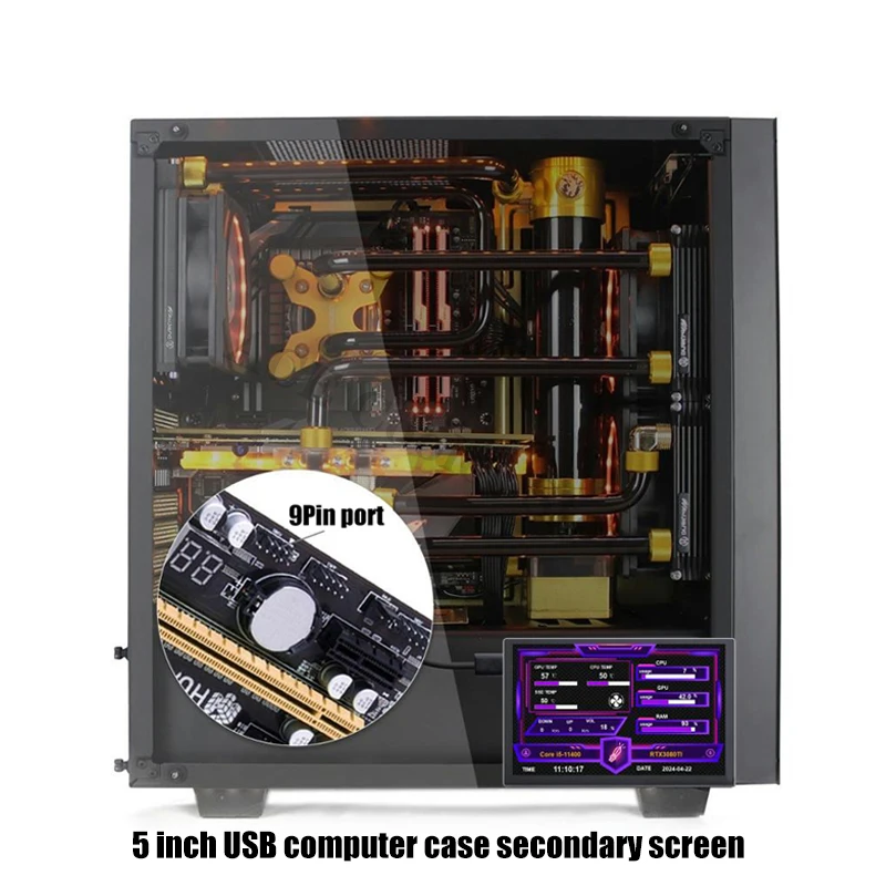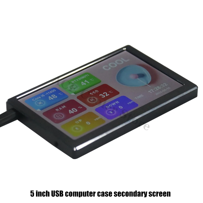 MOD Monitor de gabinete de PC de 5 pulgadas para Hardware de computadora, monitoreo de datos en funcionamiento, soporte conectado UBS tipo C, CPU, GPU, lectura de RAM