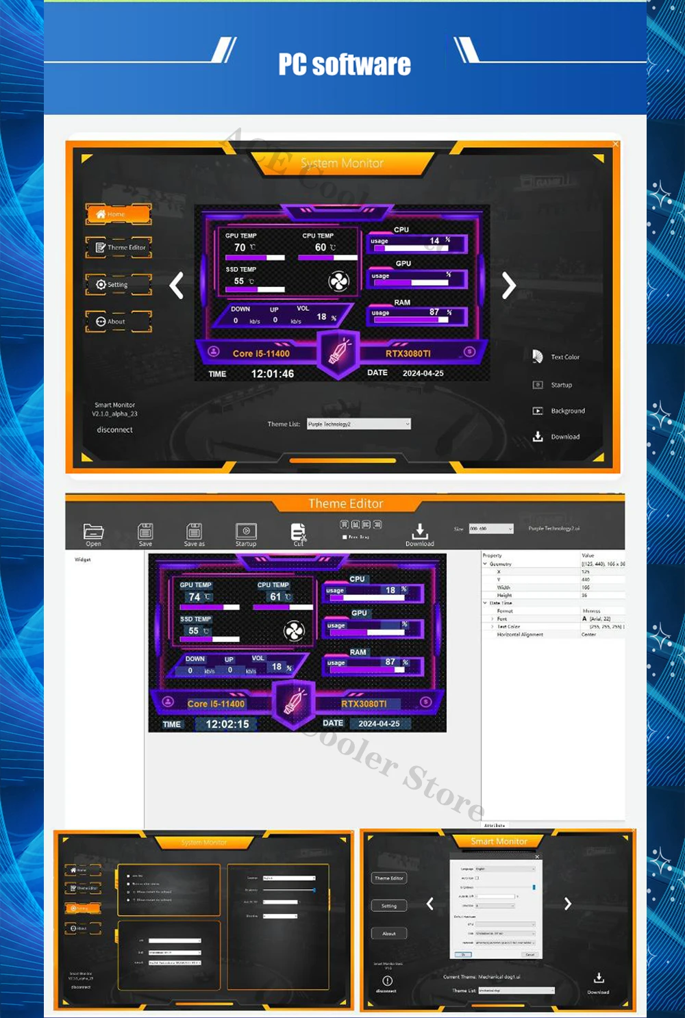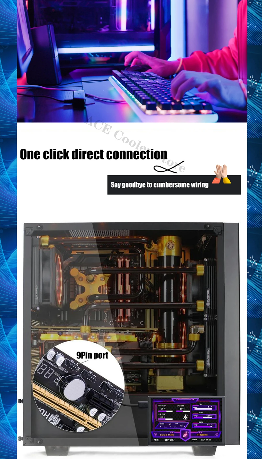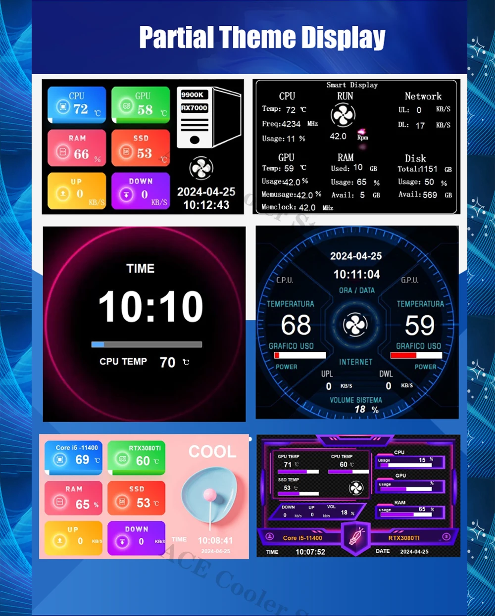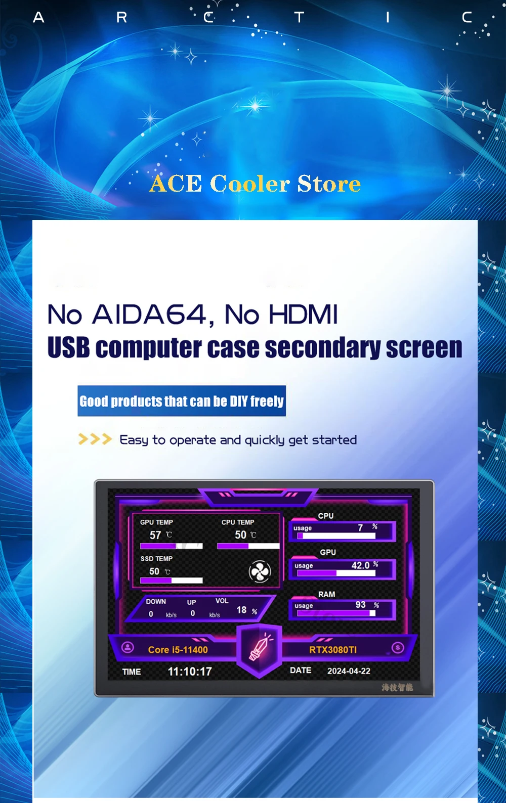 MOD Monitor de gabinete de PC de 5 pulgadas para Hardware de computadora, monitoreo de datos en funcionamiento, soporte conectado UBS tipo C, CPU, GPU, lectura de RAM
