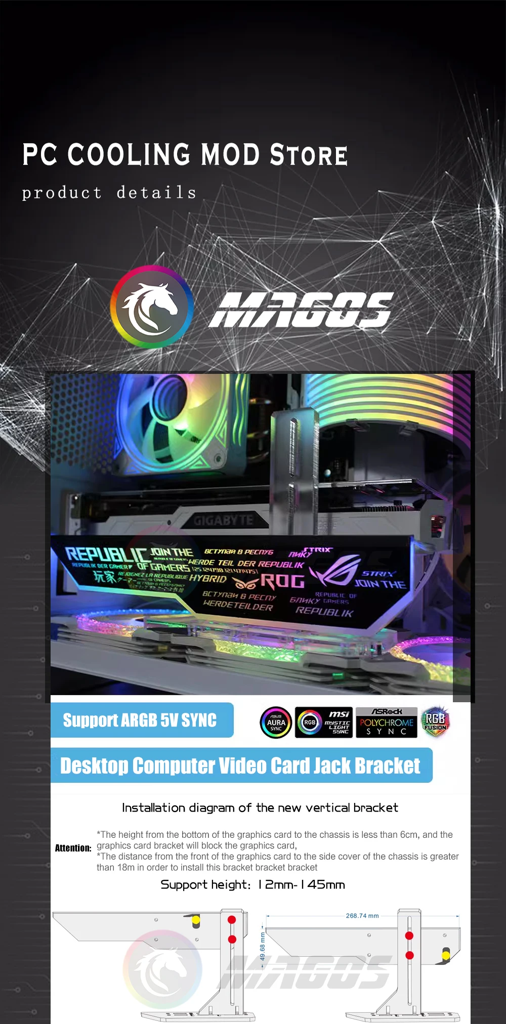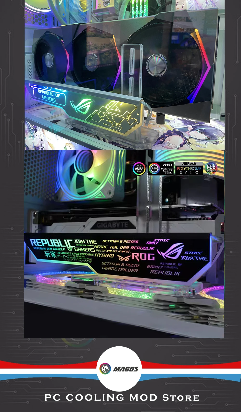 Comprar MOD-soporte para GPU, accesorio con conector para tarjeta de vídeo, 5V, 3 pines, ARGB SYNC, 4090, 3090, 3080, decoración de armario para jugadores