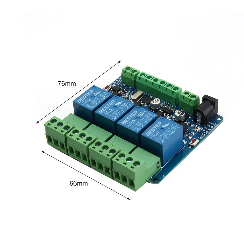 Comprar Modbus-Módulo de relé Rtu de 4 canales y 12V, interruptor de entrada/salida RS485/TTL, interfaz de comunicación, placa indicadora de 4 relés