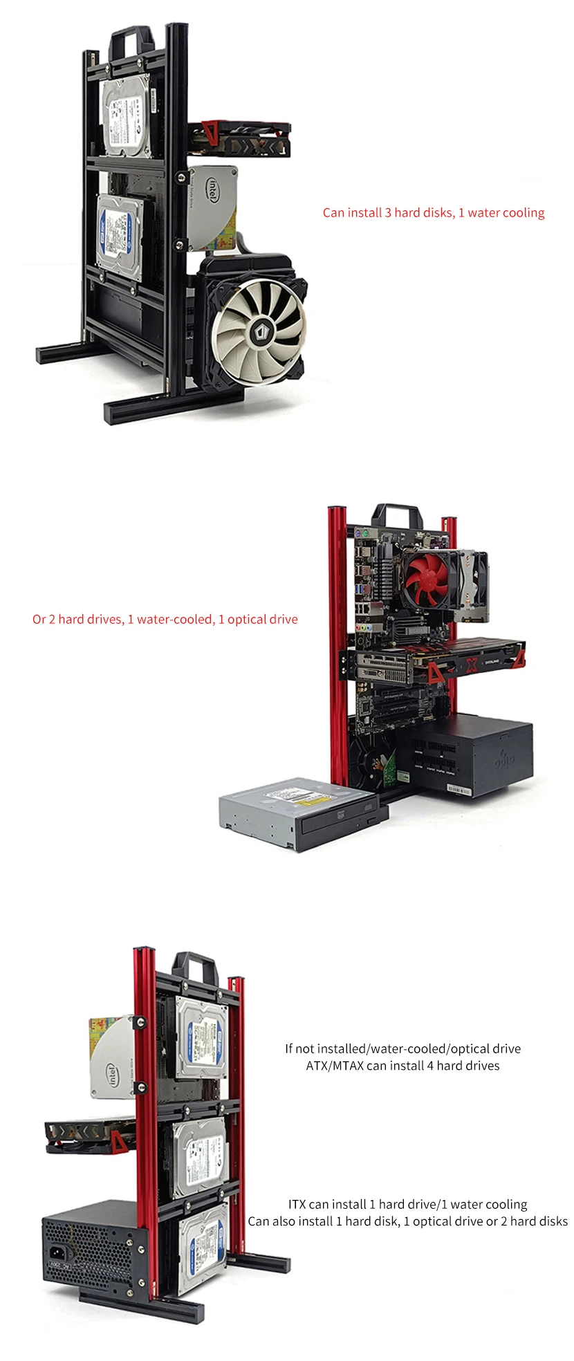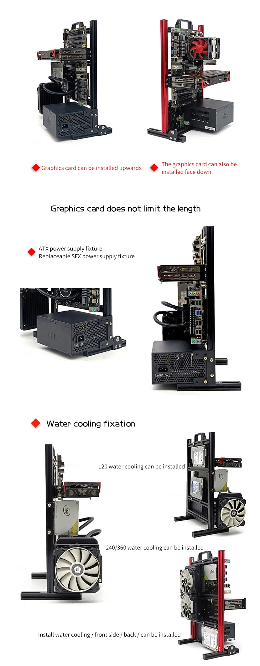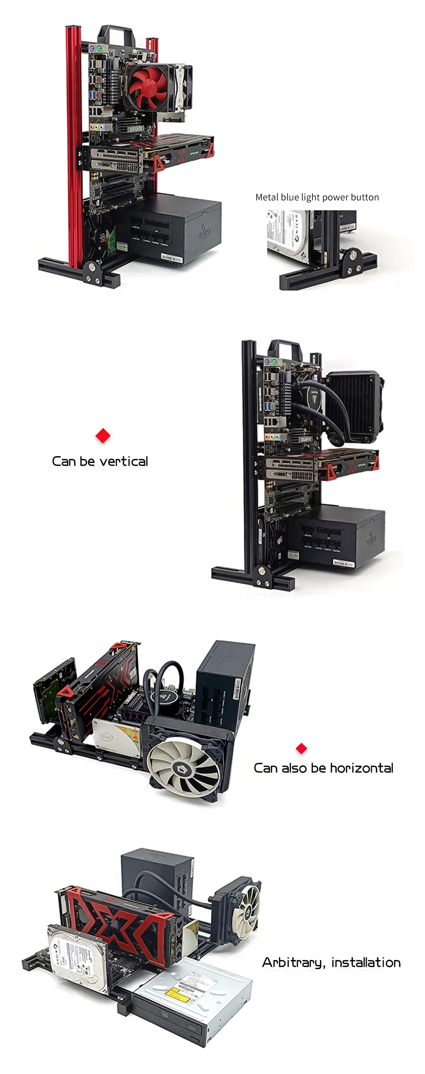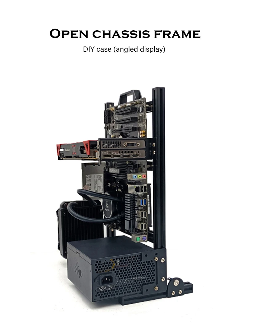Comprar Modding Marco de caja de ordenador de estilo abierto, estante de chasis Vertical, soporte de gabinete de PC de escritorio para Gaming DIY, ATX/ ITX / MATX