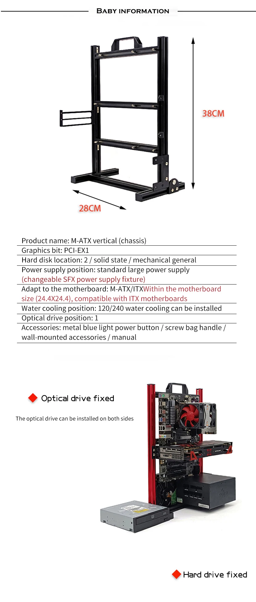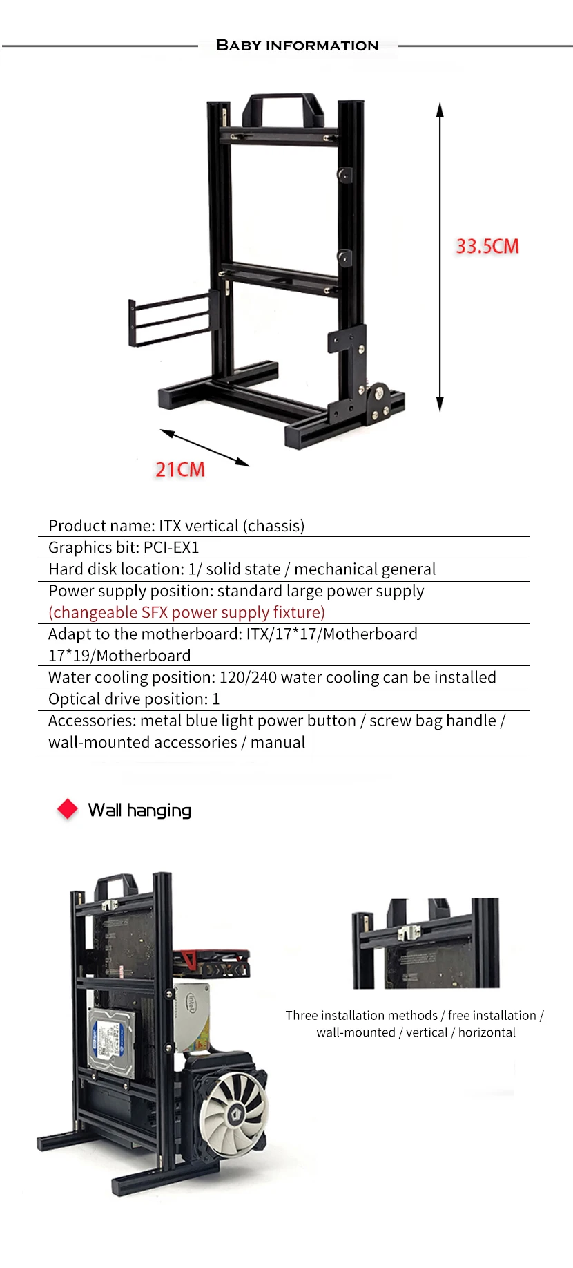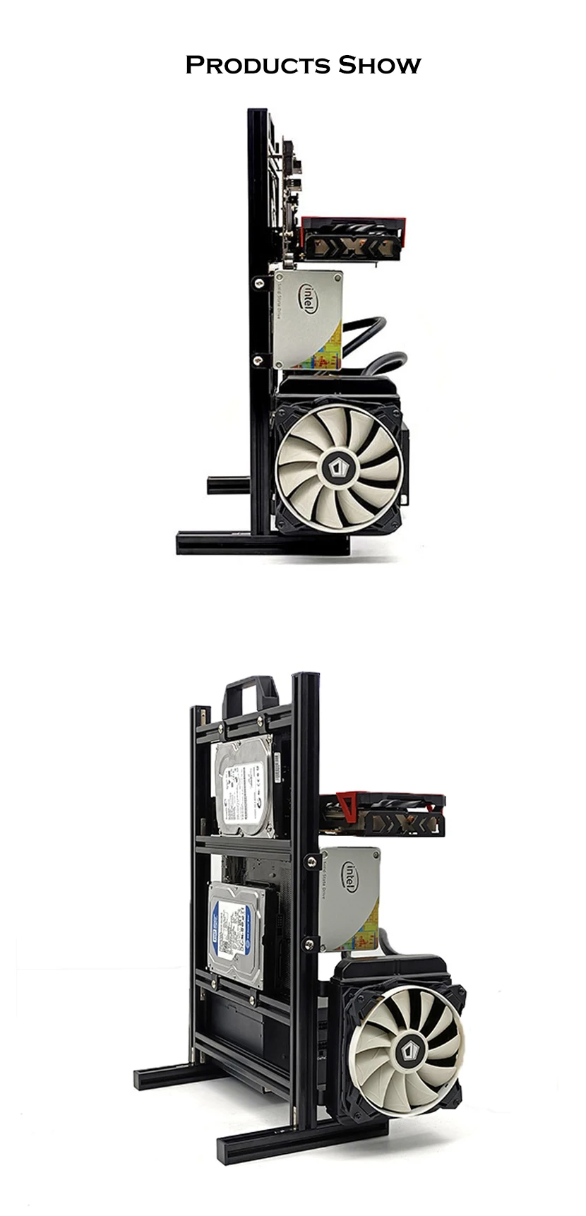 Comprar Modding Marco de caja de ordenador de estilo abierto, estante de chasis Vertical, soporte de gabinete de PC de escritorio para Gaming DIY, ATX/ ITX / MATX