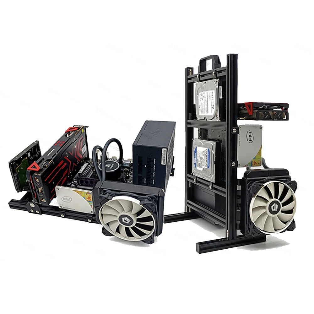 Comprar Modding Marco de caja de ordenador de estilo abierto, estante de chasis Vertical, soporte de gabinete de PC de escritorio para Gaming DIY, ATX/ ITX / MATX
