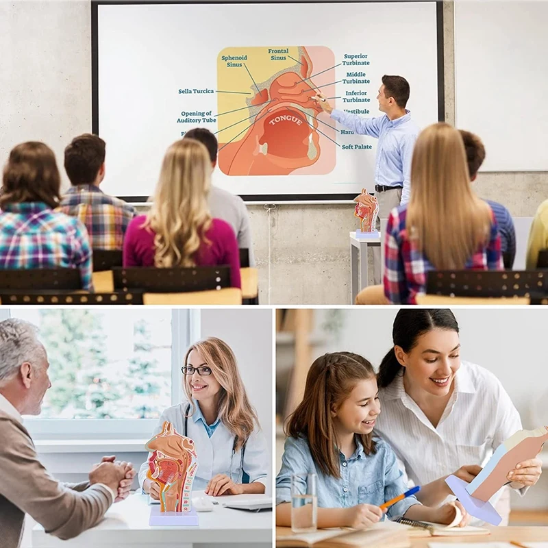 Modelo de anatomía de garganta y cavidad Nasal, modelo anatómico humano de faringe y laringe para estudiantes, enseñanza de exhibición de estudio[Modelo anatómico patológico de boca, nariz, garganta y garganta]: la cavidad nasal anatómica humana en la garganta muestra en detalle los cambios patológicos de la cavidad nasal, la cavidad oral, la faringe, la laringe, etc.