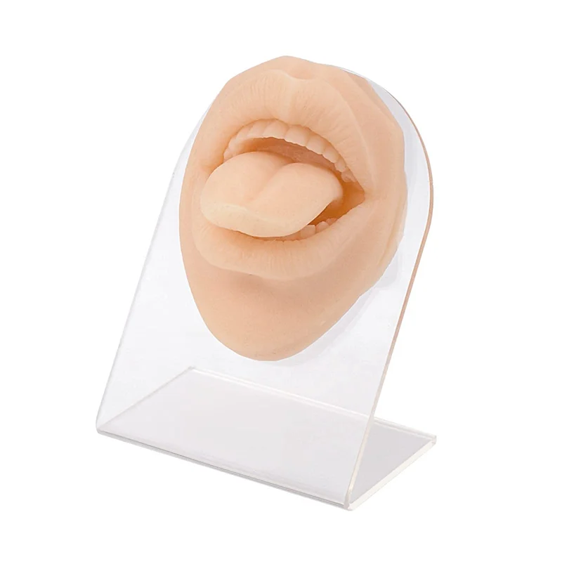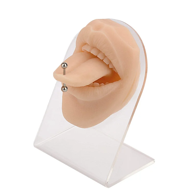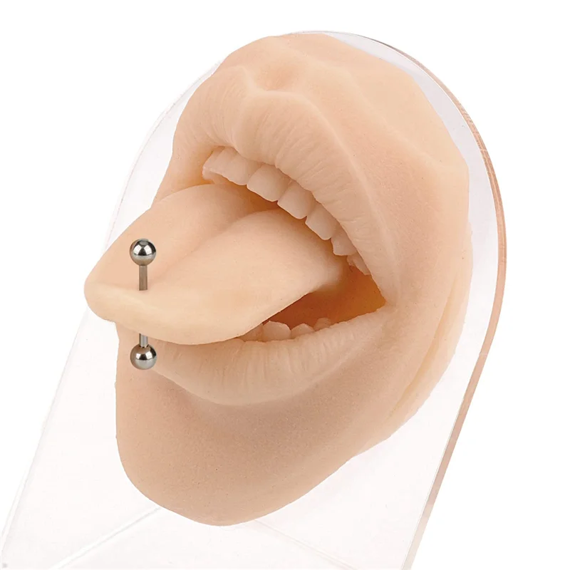 No hay mejor manera de aprender a hacer piercings que con este modelo de boca de silicona con lengua. La simulación de la boca abierta con la lengua le hace tener más sentido de la práctica.