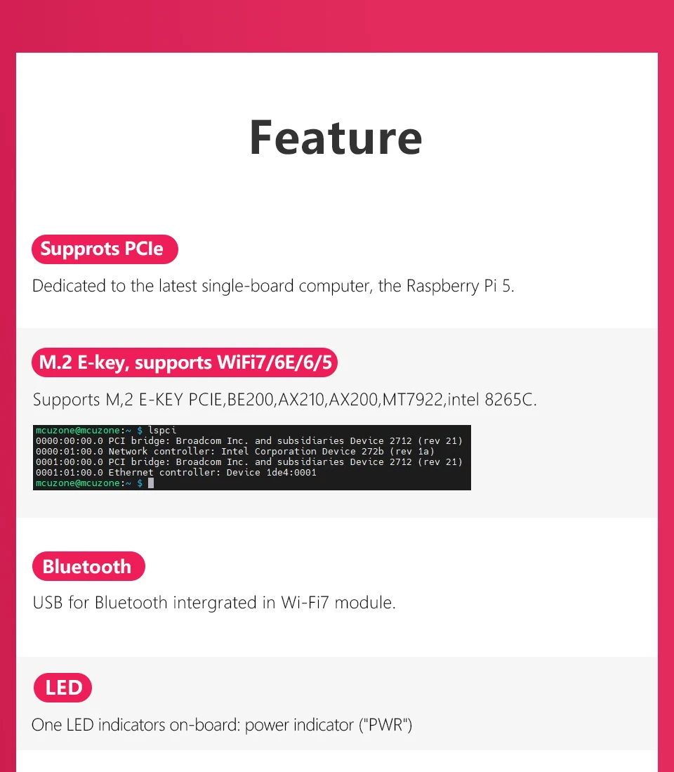 Comprar (Modelo: MPW7) Módulo Raspberry Pi 5 PCIE a M.2, BE200,AX210,AX200, compatible con google TPU,WiF6E