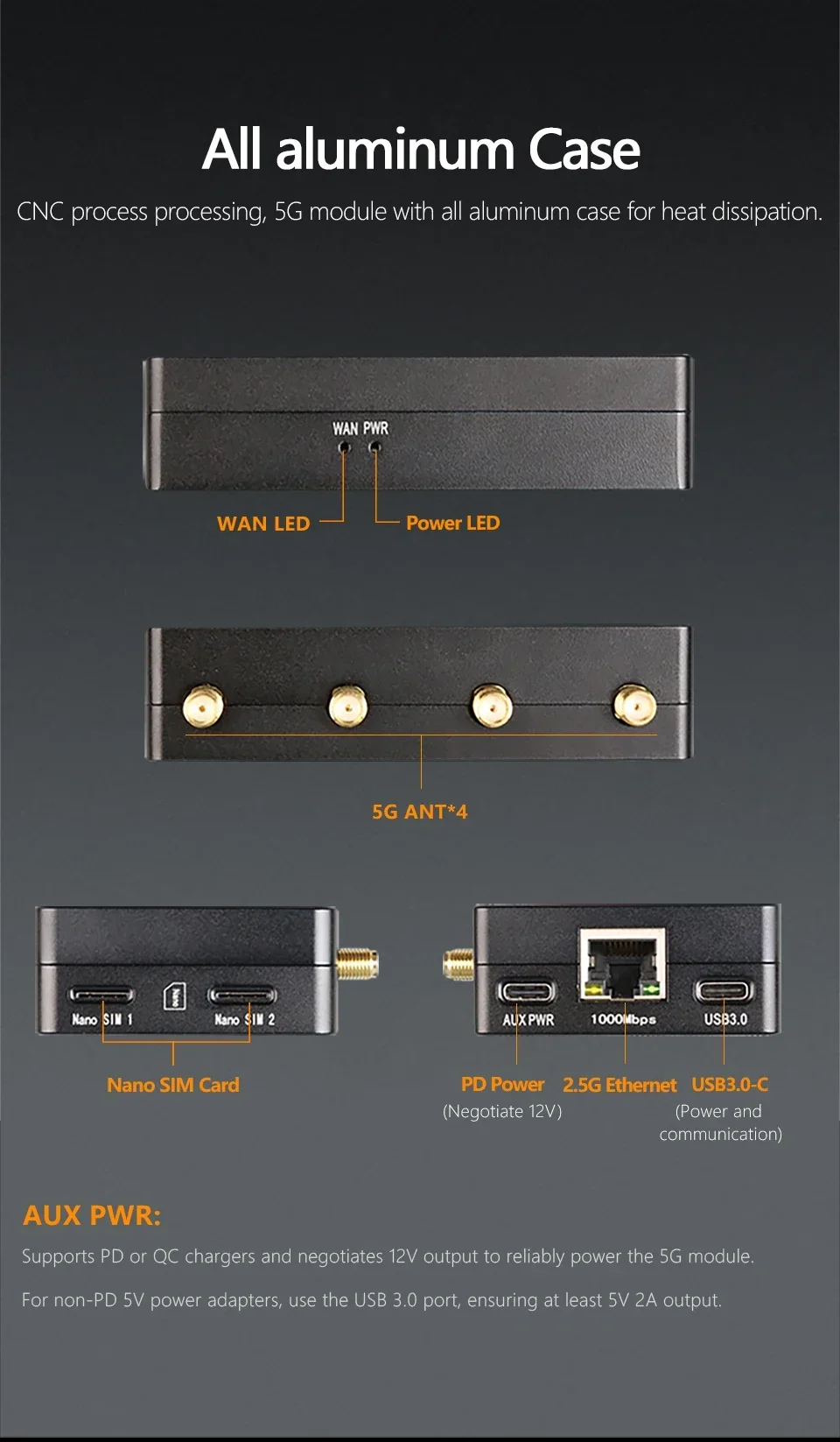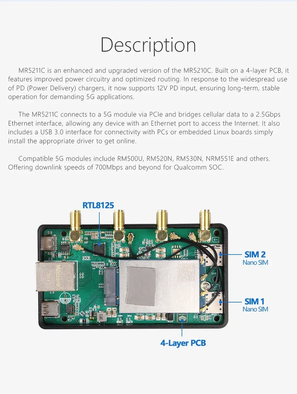 (Modelo:MR5211C)USB3.0-C M.2 5G a 2.5G Ethernet(RJ45), caja CNC, versión mejorada MR5210C compatible con RM521F,RM520N,RM510Q,RM500Q