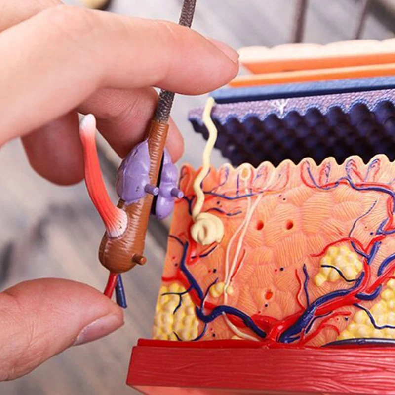 Hecho de materiales plásticos respetuosos con el medio ambiente, combinación de colores por ordenador, pintado a mano de alta calidad. Muestra casi real de la estructura de la piel humana.