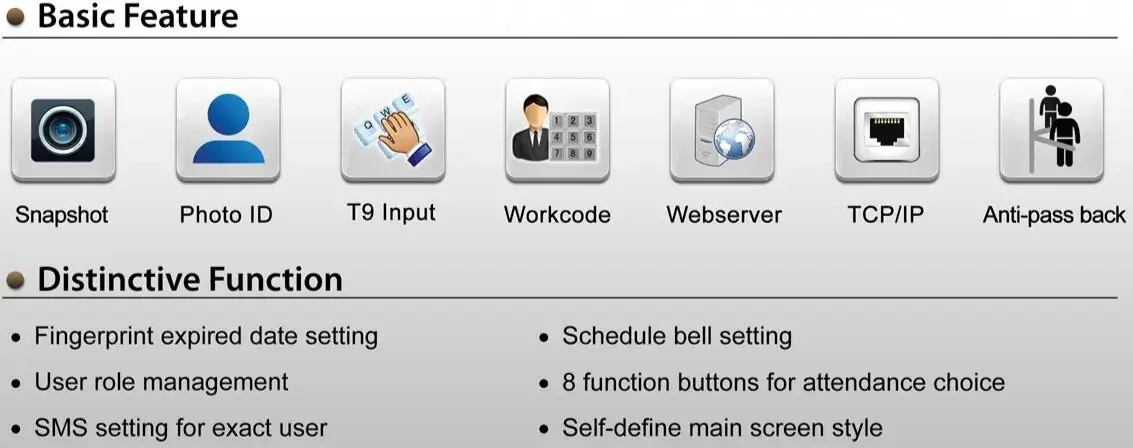Características básicas:1. Configuración de fecha vencida por huella digital