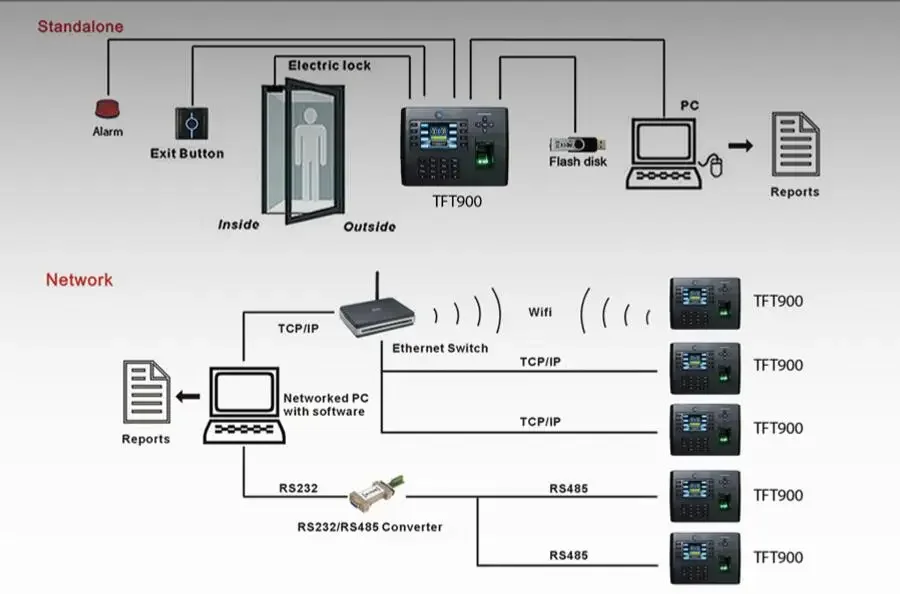 Comprar (Modelo TFT900) Sistema de control de acceso con huellas dactilares con función GPRS o 3G