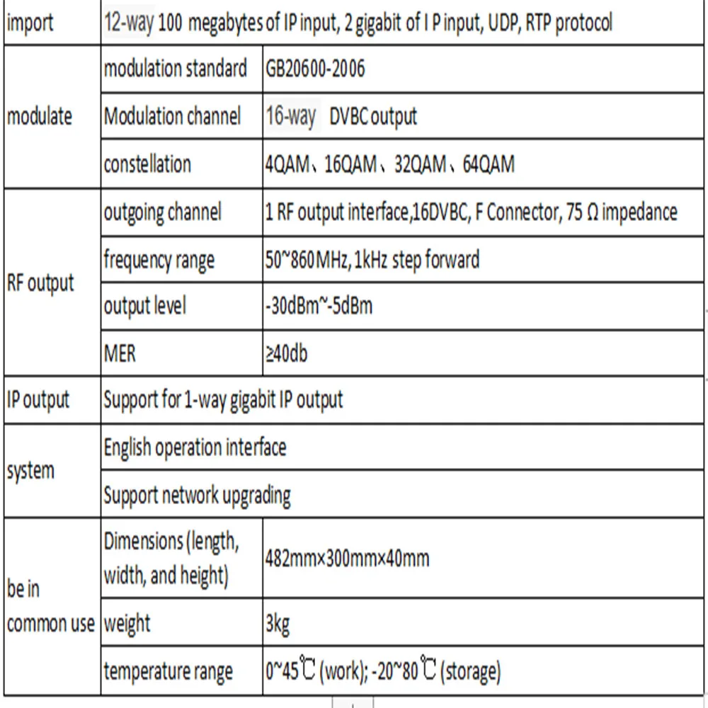 * Admite 1 interfaz de salida RF, 16 salidas DVBC.