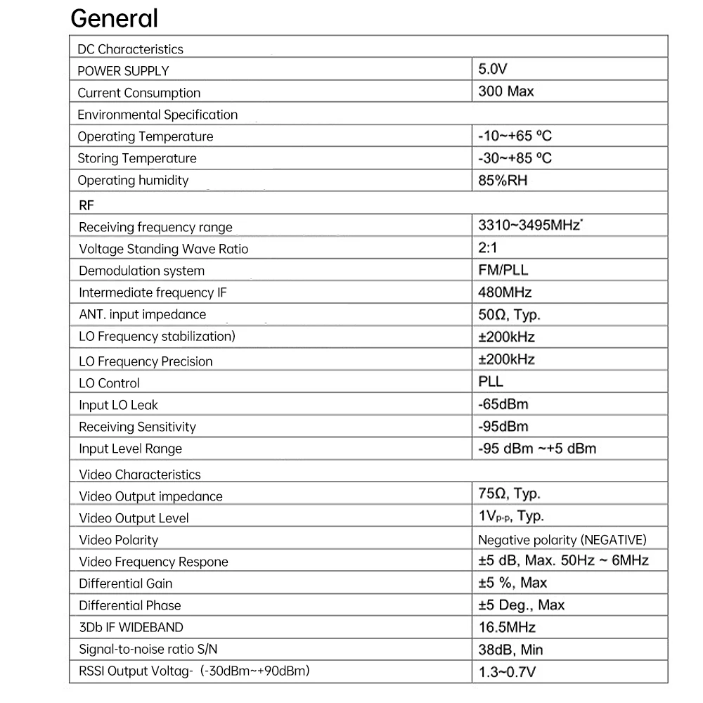 Nombre del producto: módulo receptor de vídeo de 3,3 GHz