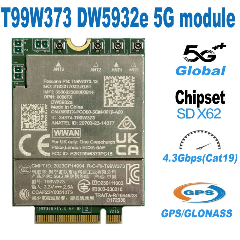 Comprar Módulo 5G T99W373 DW5932e módulo eSIM LTE Cat19 M.2 tarjeta WWAN para Dell Latitude 7350 7450 7650 9450 ventana portátil y tableta