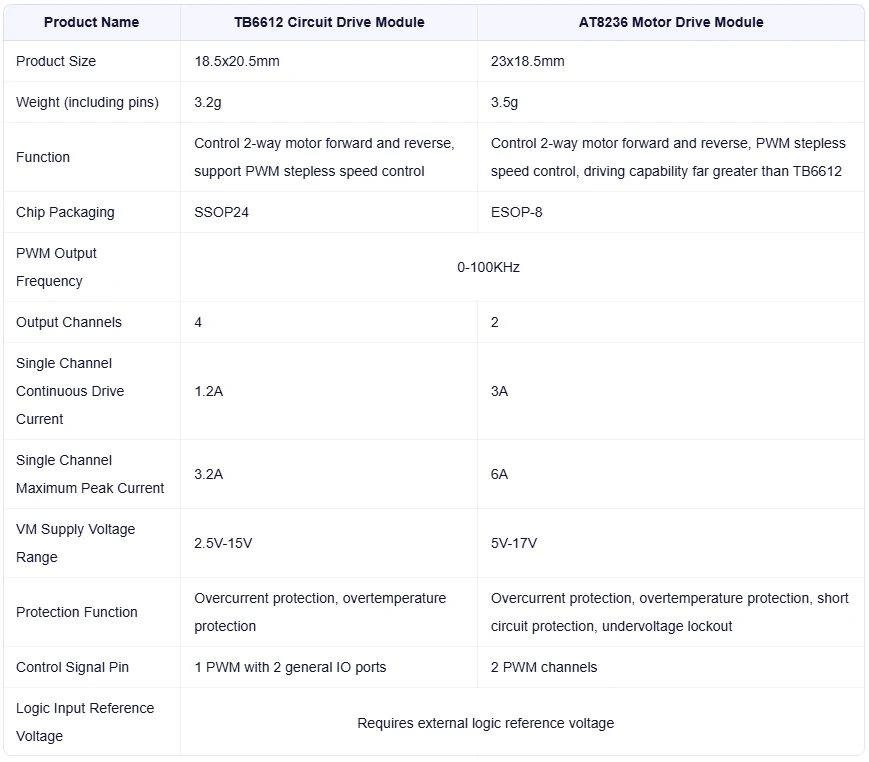 El AT8236 es un controlador de motor con escobillas de CC capaz de controlar bidireccionales motores con una corriente máxima de hasta 6 A.La velocidad del motor se puede controlar mediante modulación de ancho de pulso (PWM) en la señal de entrada y también tiene un modo de suspensión de bajo consumo.
