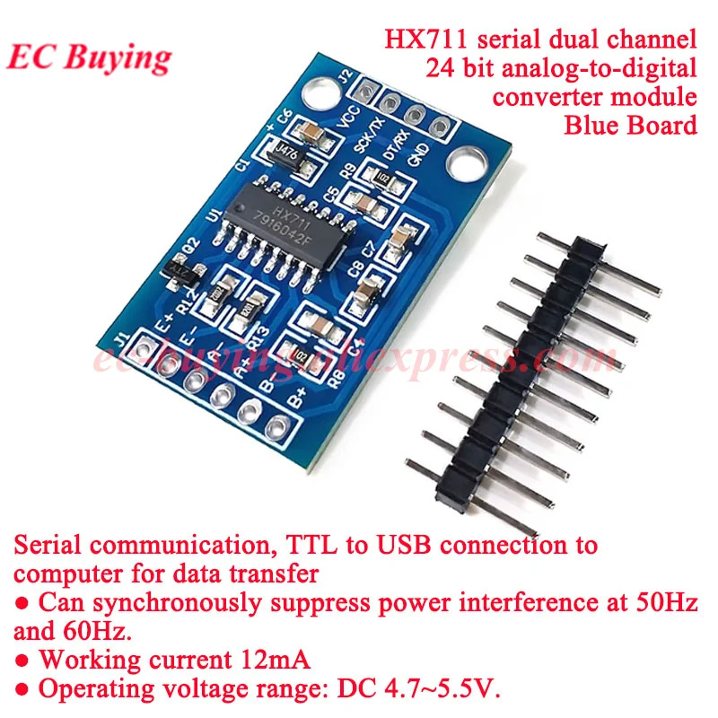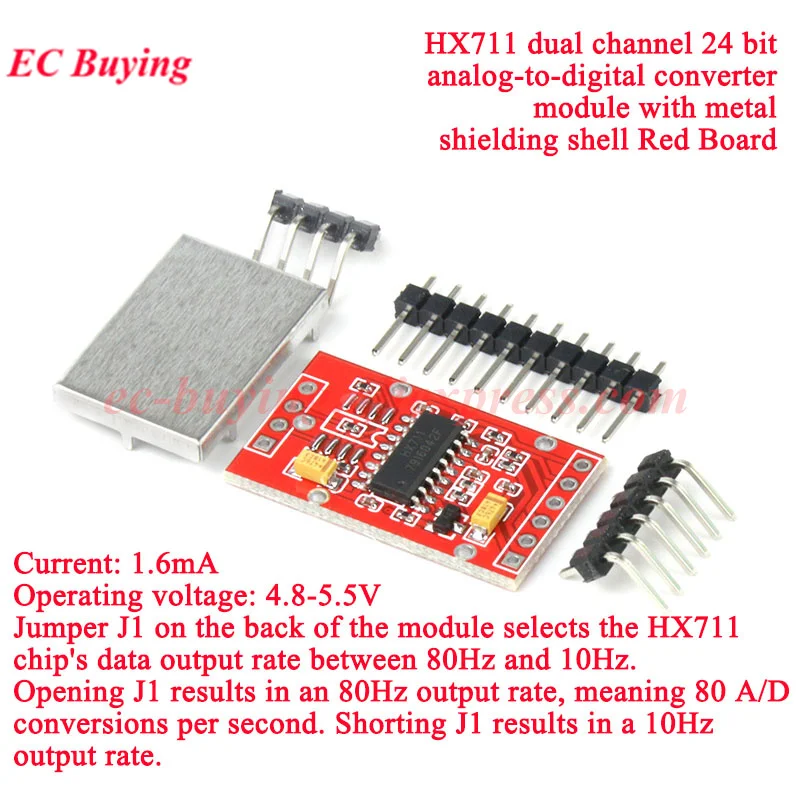 Este módulo utiliza un chip convertidor A/D de alta precisión de 24 bits TM7711, que es el 1 diseñado para básculas electrónicas de alta precisión con entrada de un solo canal analógico.El circuito de entrada se puede configurar para proporcionar un modo de sensor de puente de voltaje (como presión, pesaje), es el módulo frontal de muestreo ideal de alta precisión y bajo costo;