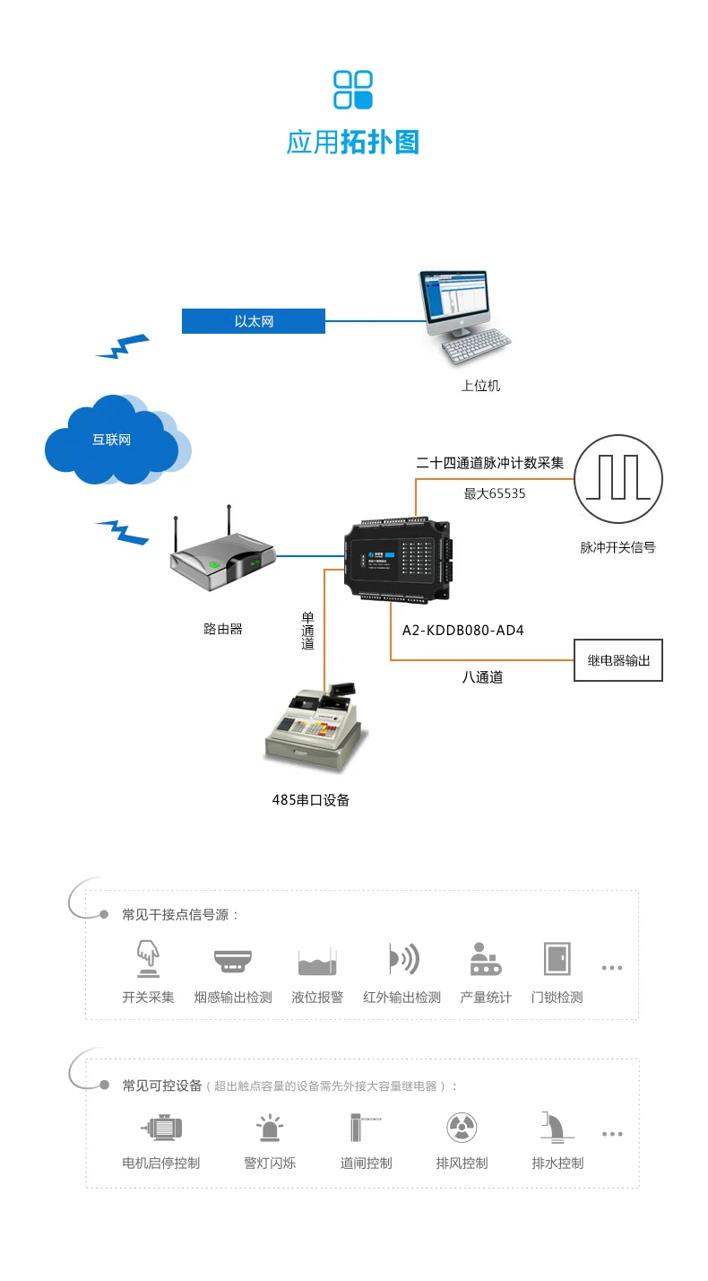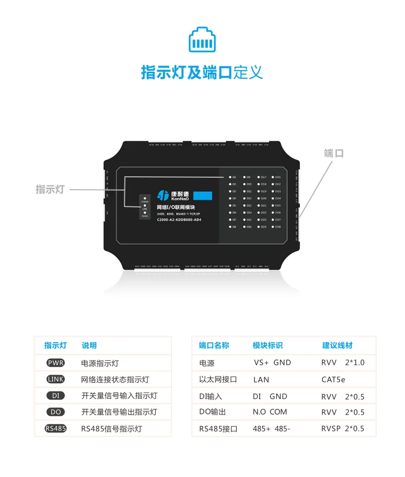 Comprar Módulo de adquisición de valor de conmutación 485 transmisión transparente 24 vías Entrada de contacto seco a Ethernet IOKDDB080-AD4