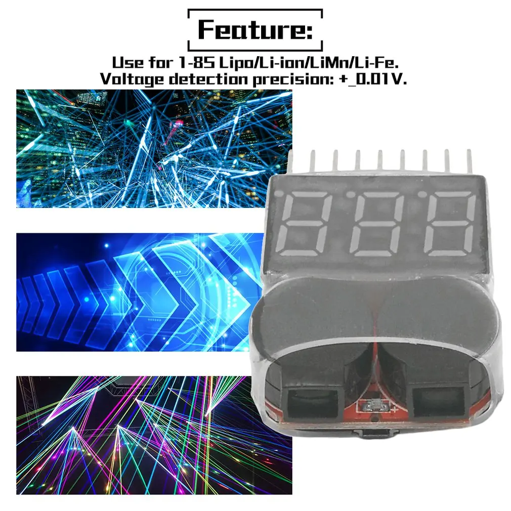 Probador de voltaje de Batería 2 en 1 1-8S Lipo/Li-ion/Fe, comprobador de alarma de zumbador de bajo voltaje para vehículos y juguetes de Control remoto
