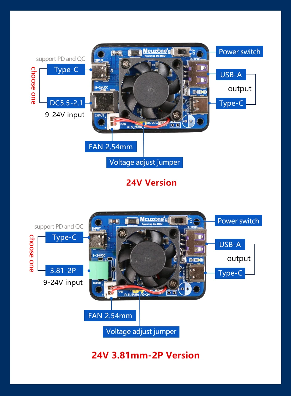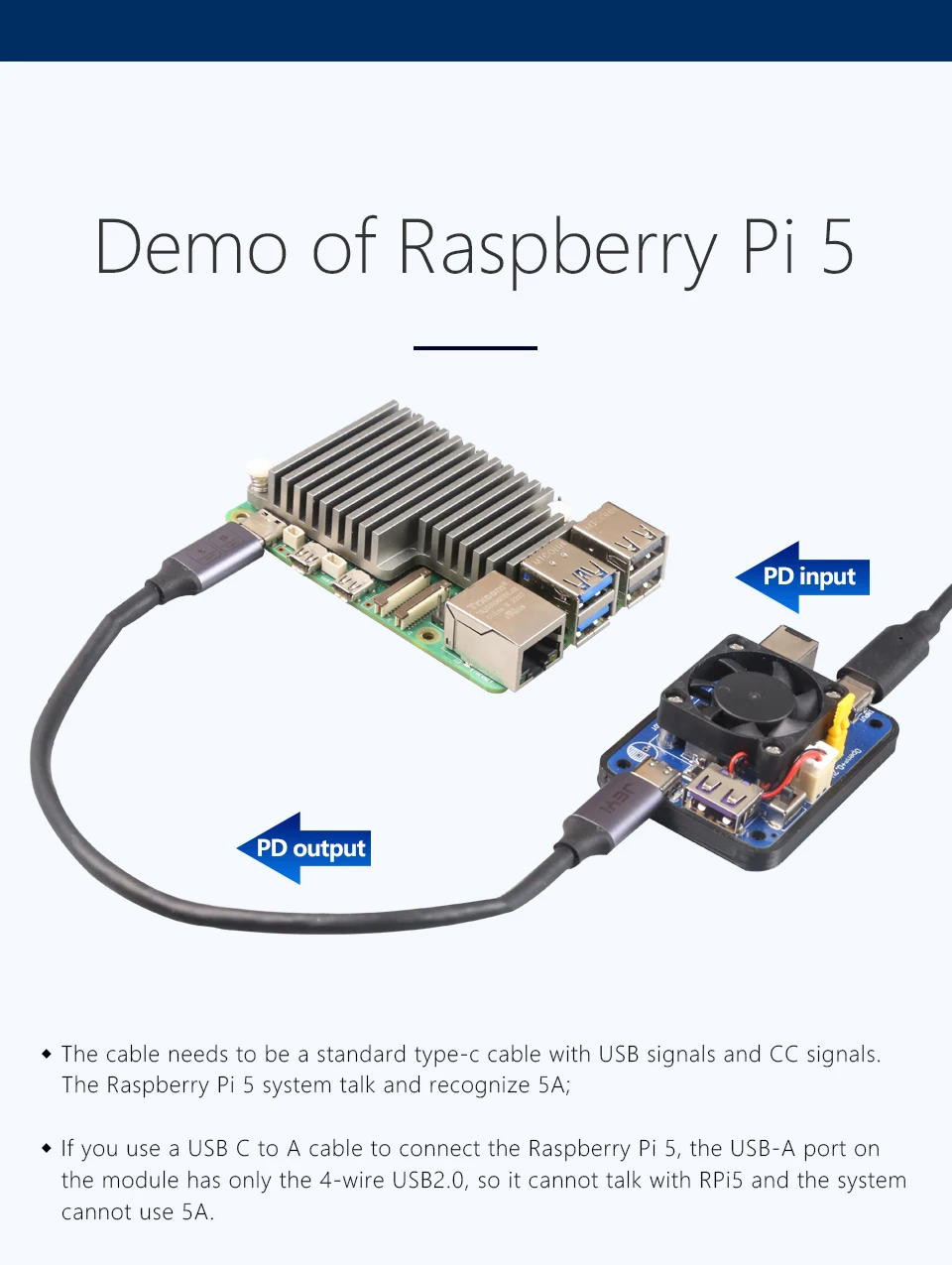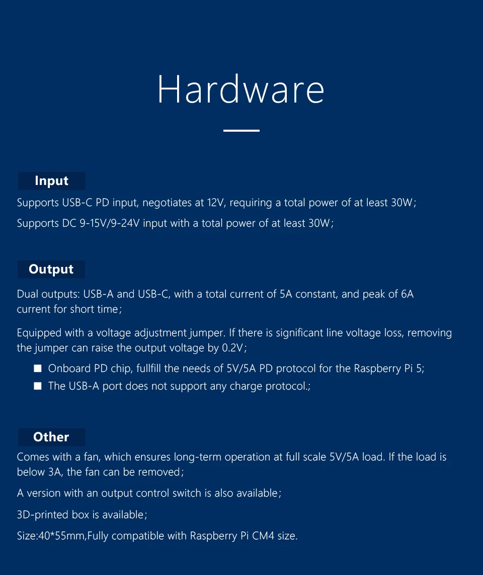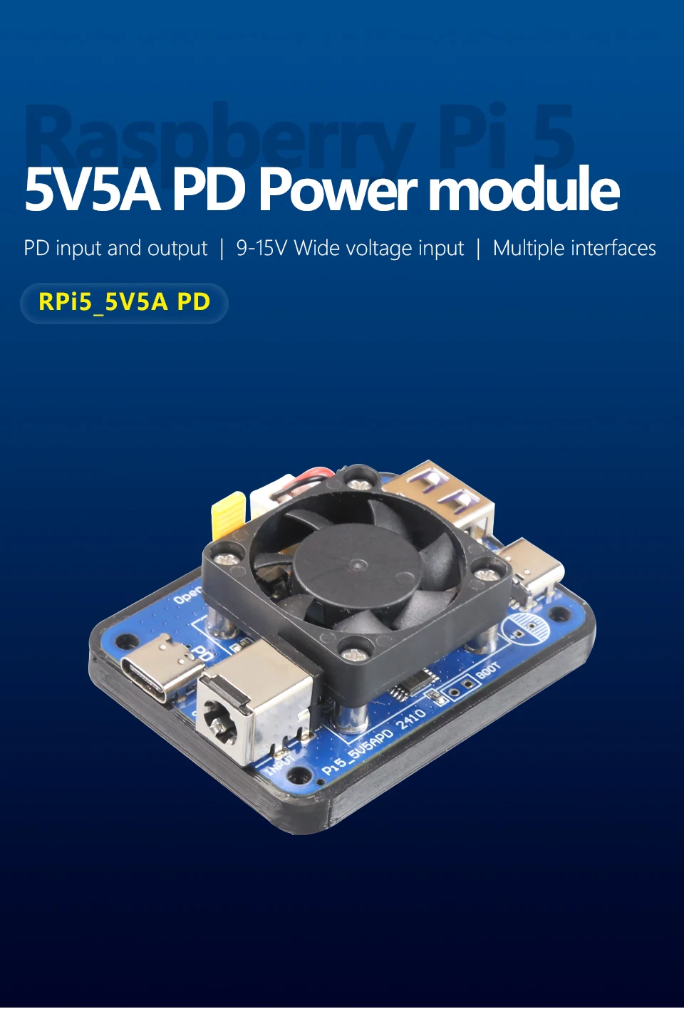 Módulo de alimentación PD dual dedicado 5V5A para Raspberry Pi 5, entrada de voltaje amplio de 9-24 V/entrada PD y salida PD dual