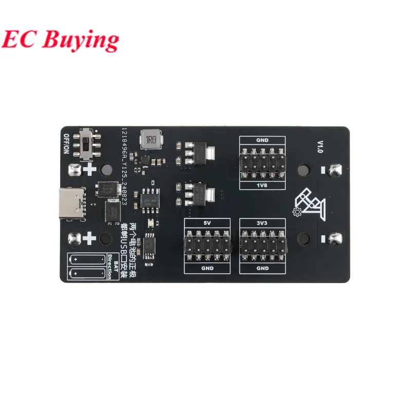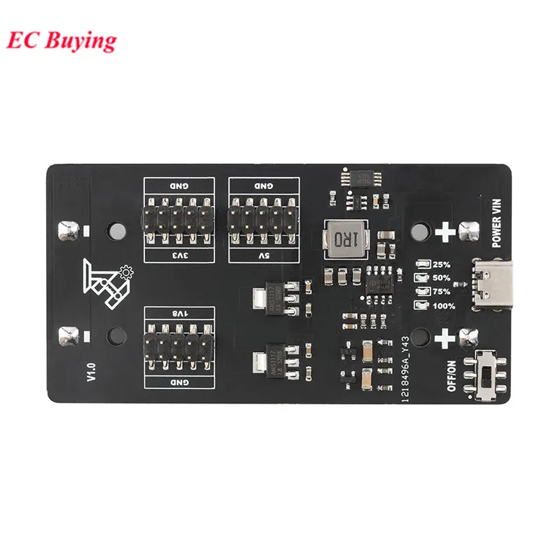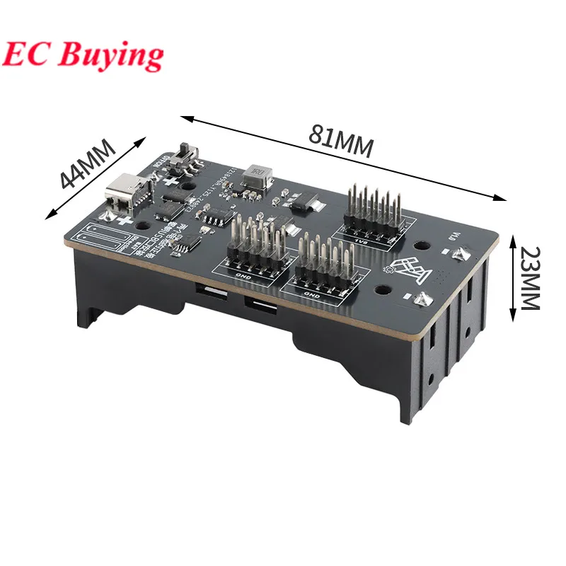 El módulo puede proporcionar un suministro de energía ininterrumpido al microordenador de un solo chip a través del 3.Batería de litio de 7v 18650 y fuente de alimentación de 5v con entrada de puerto USB tipo C, y también se puede utilizar como fuente de alimentación para algunos módulos con parámetros eléctricos adecuados (no conectados directamente al motor), el módulo está espaciado en 2.54 mm Emite tres voltajes diferentes de 5V, 3.3v y 1.8V en forma de conector de clavija, que se puede utilizar como fuente de alimentación en varios escenarios.El módulo tiene 4 luces indicadoras, que se utilizan para identificar la energía actual de la batería y el estado de carga de la batería.