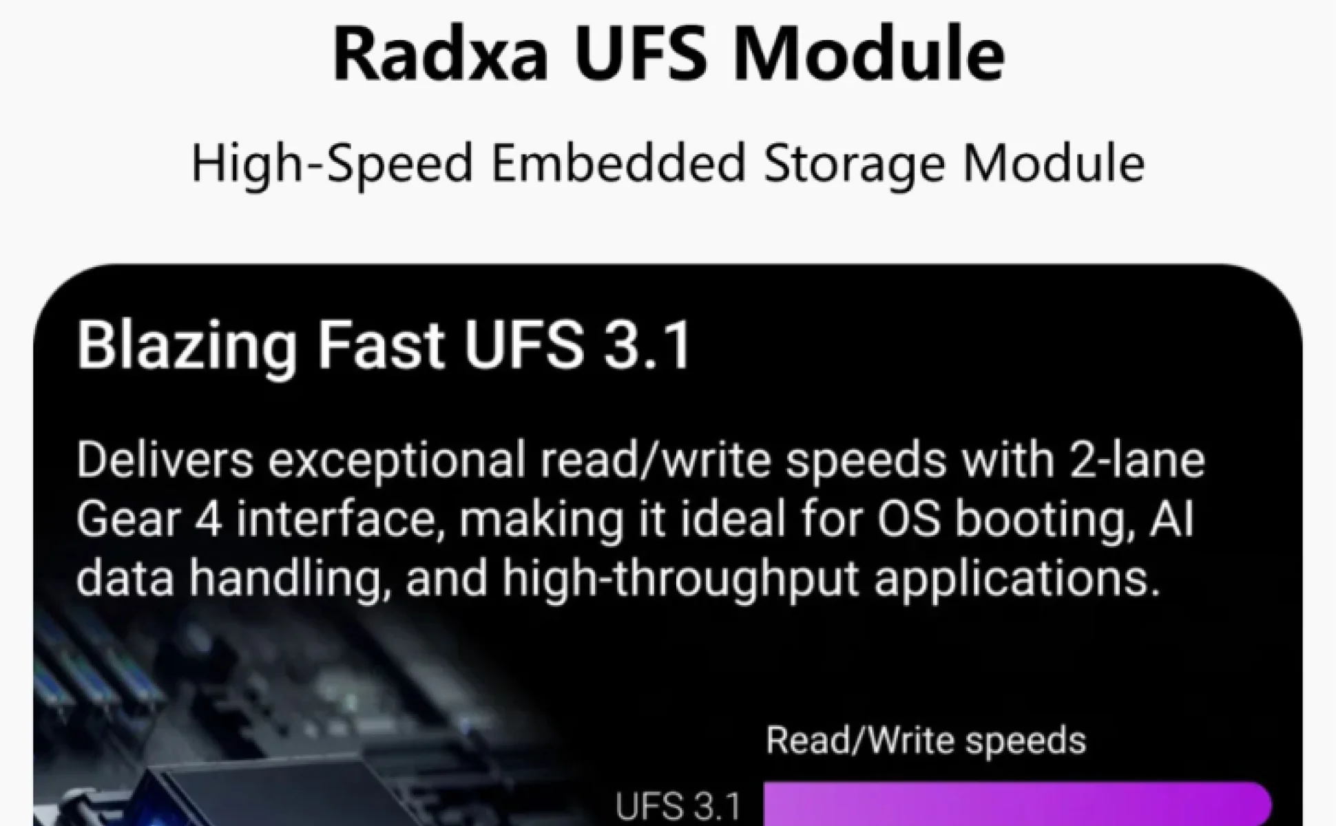 Módulo Radxa UFS, hasta 256G, compatible con radxa SBCs, conectables, chips de almacenamiento de alta calidad