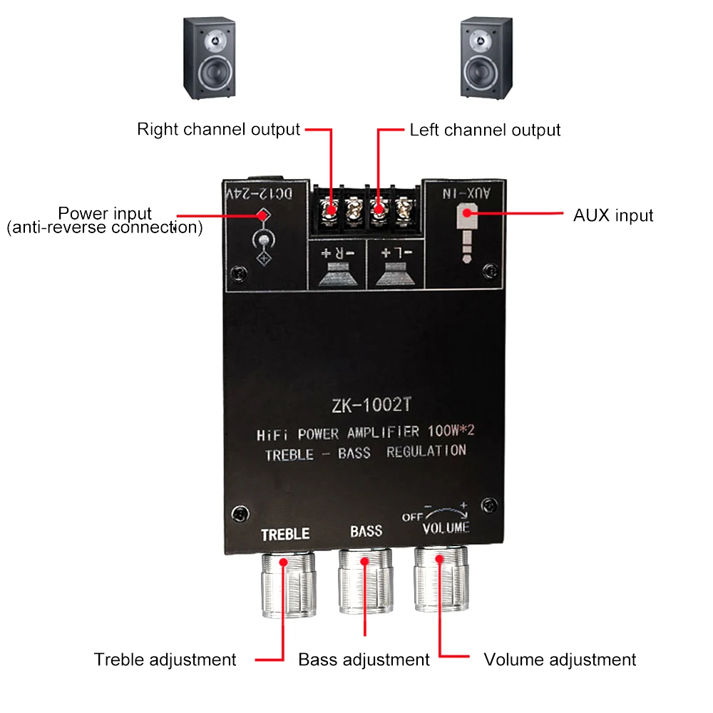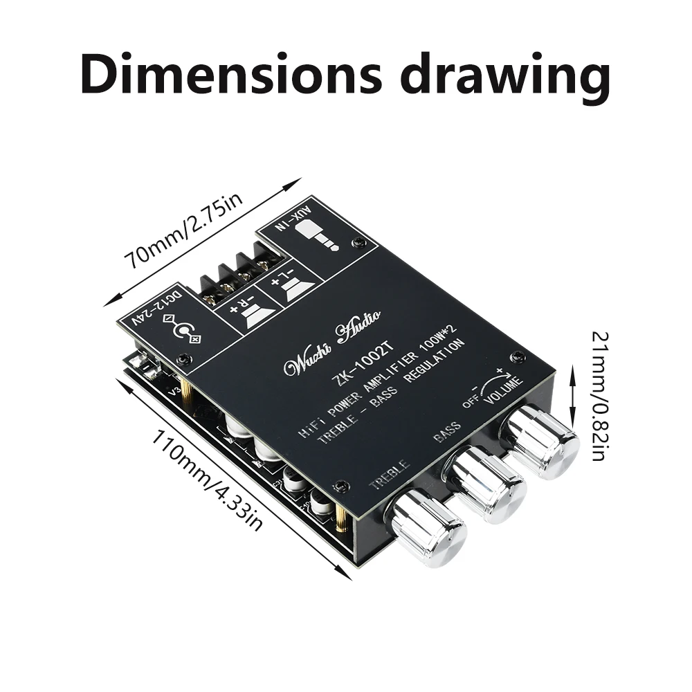 Nombre del producto: Módulo amplificador de audio Bluetooth 100W * 2 con ajuste de tono