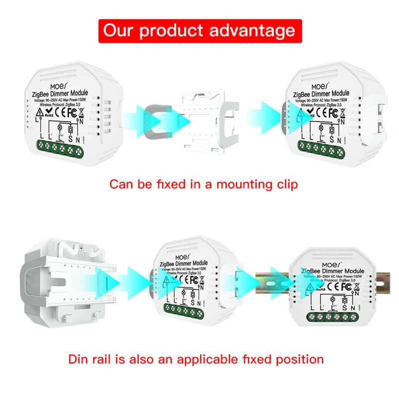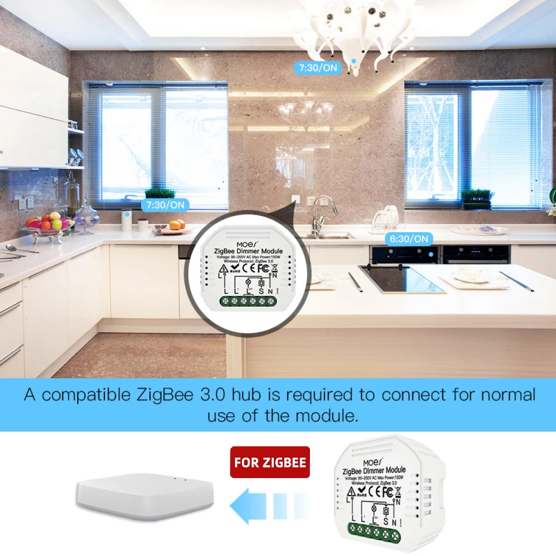 1. Este módulo inteligente de atenuación Tuya 3,0 está diseñado especialmente con el protocolo 3,0, compatible con el Centro Tuya para realizar toda la conexión de su casa, una muy buena sustitución inestable-Fi. El protocolo 3,0 con mini diseño se adapta a la caja de interruptores de pared de la UE/Reino Unido, y lo oculta fácilmente en su caja de interruptores de pared de su interruptor tradicional; el interruptor tradicional y este módulo inteligente pueden funcionar de forma independiente sin interferencias. (Nota: Este módulo solo es adecuado para el interruptor de reinicio).