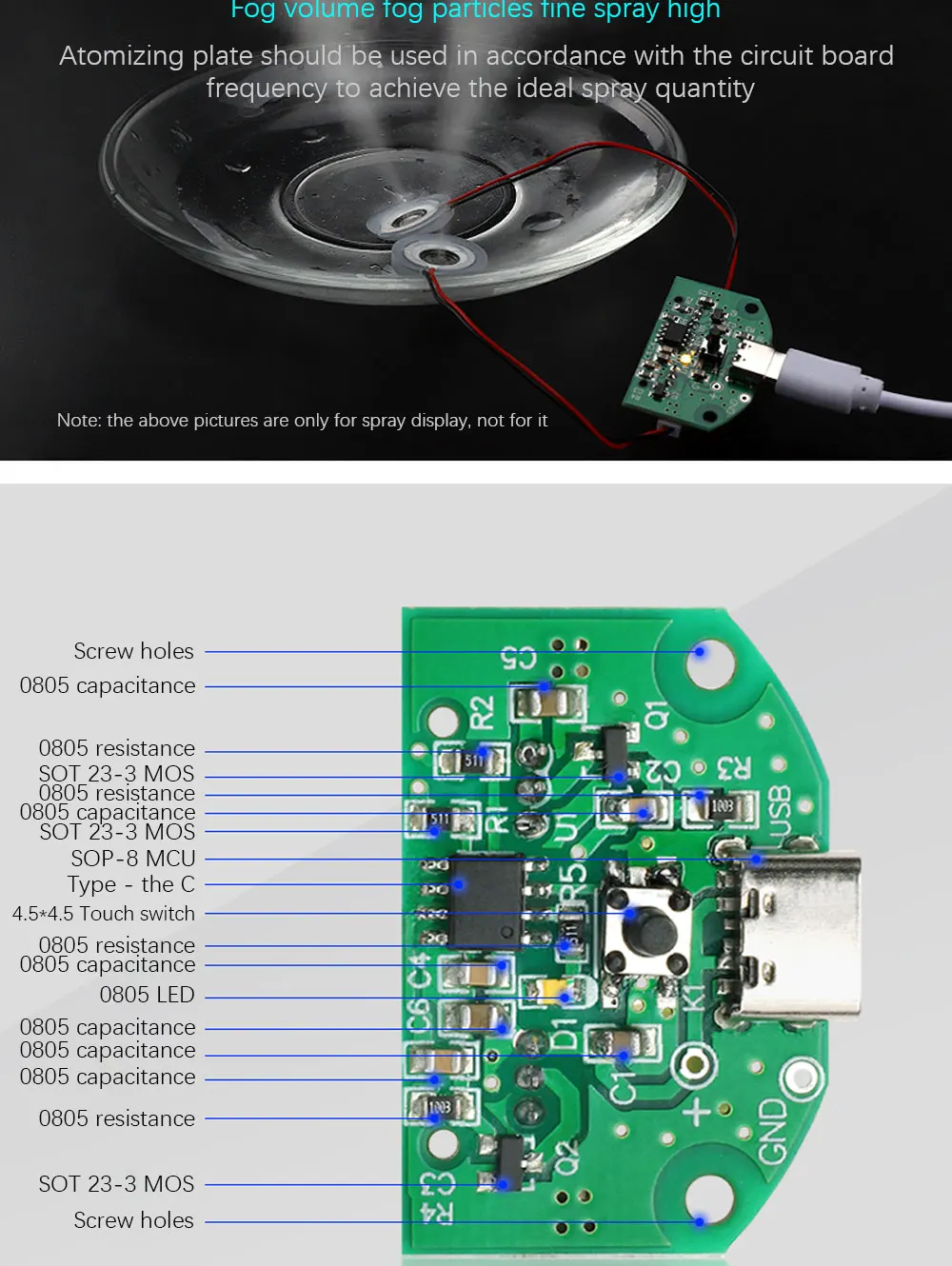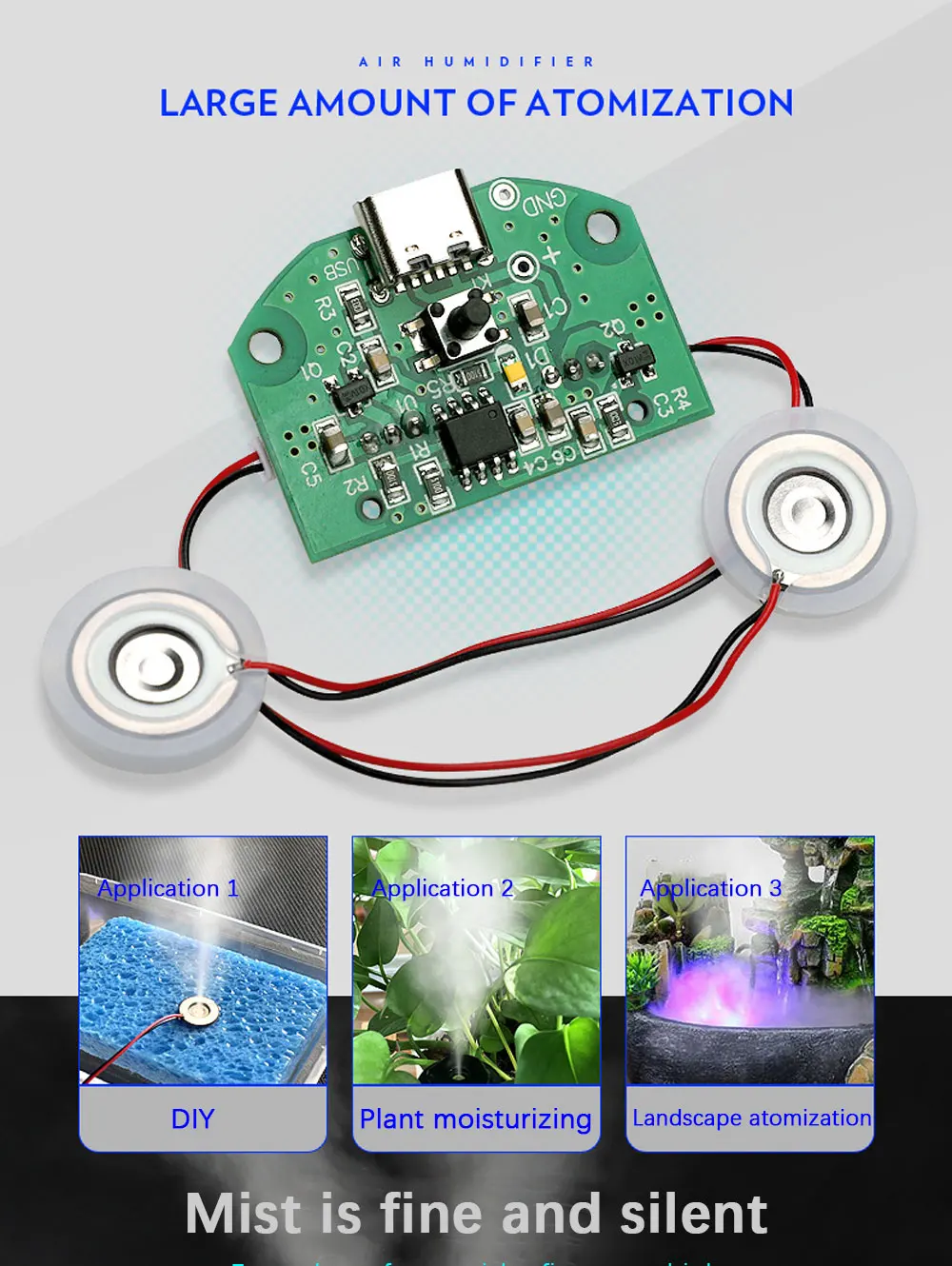 Comprar Módulo de atomización de doble pulverización, humidificador USB, placa de circuito de conducción, equipo Experimental de atomización, incubación ultrasónica DIY