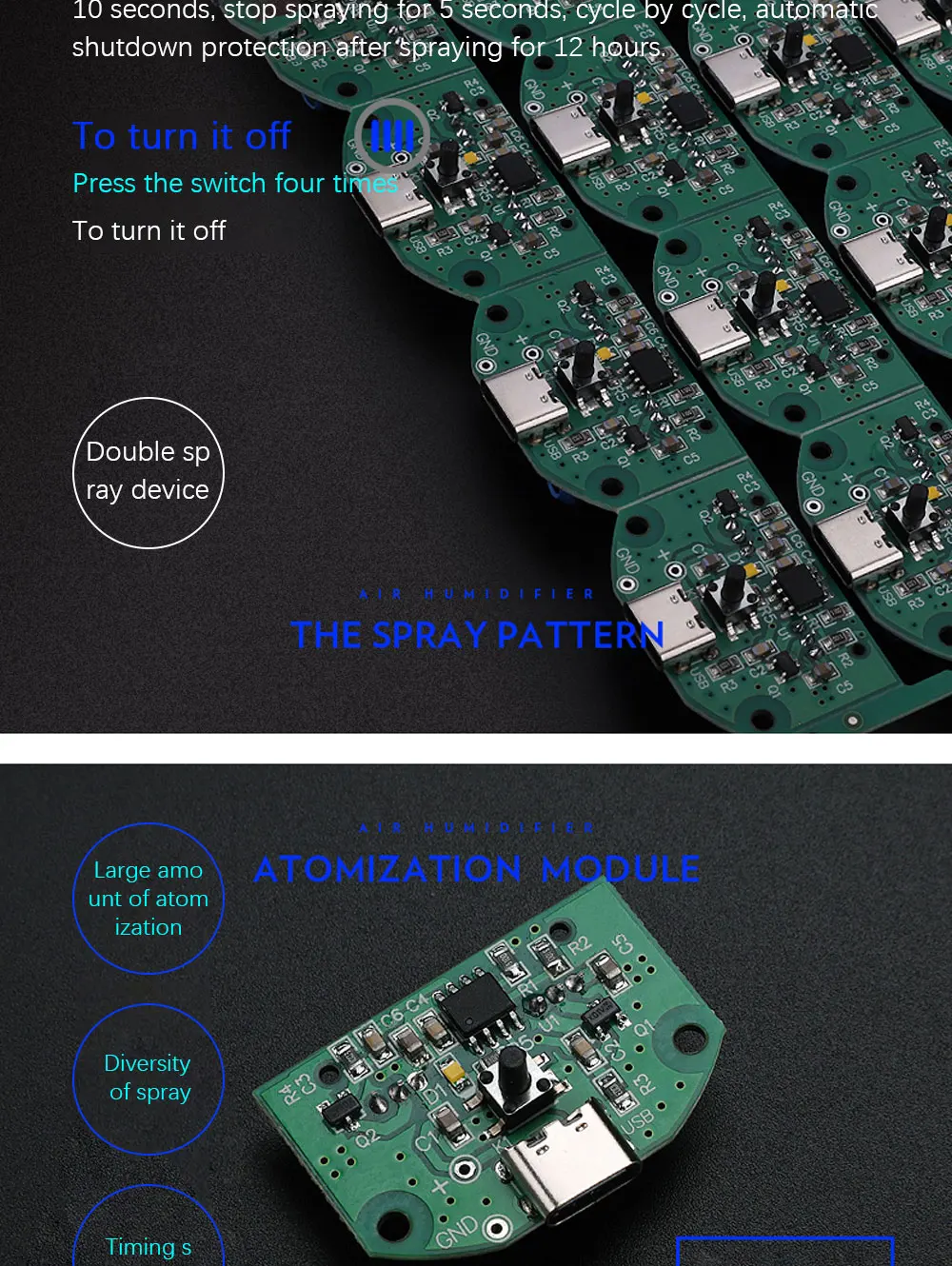 Módulo de atomización de doble pulverización, humidificador USB, placa de circuito de conducción, equipo Experimental de atomización, incubación ultrasónica DIY
