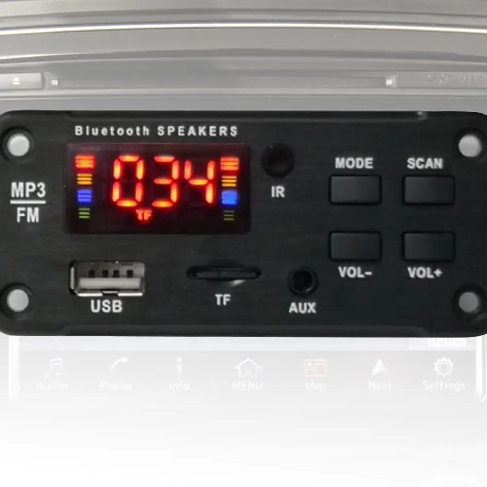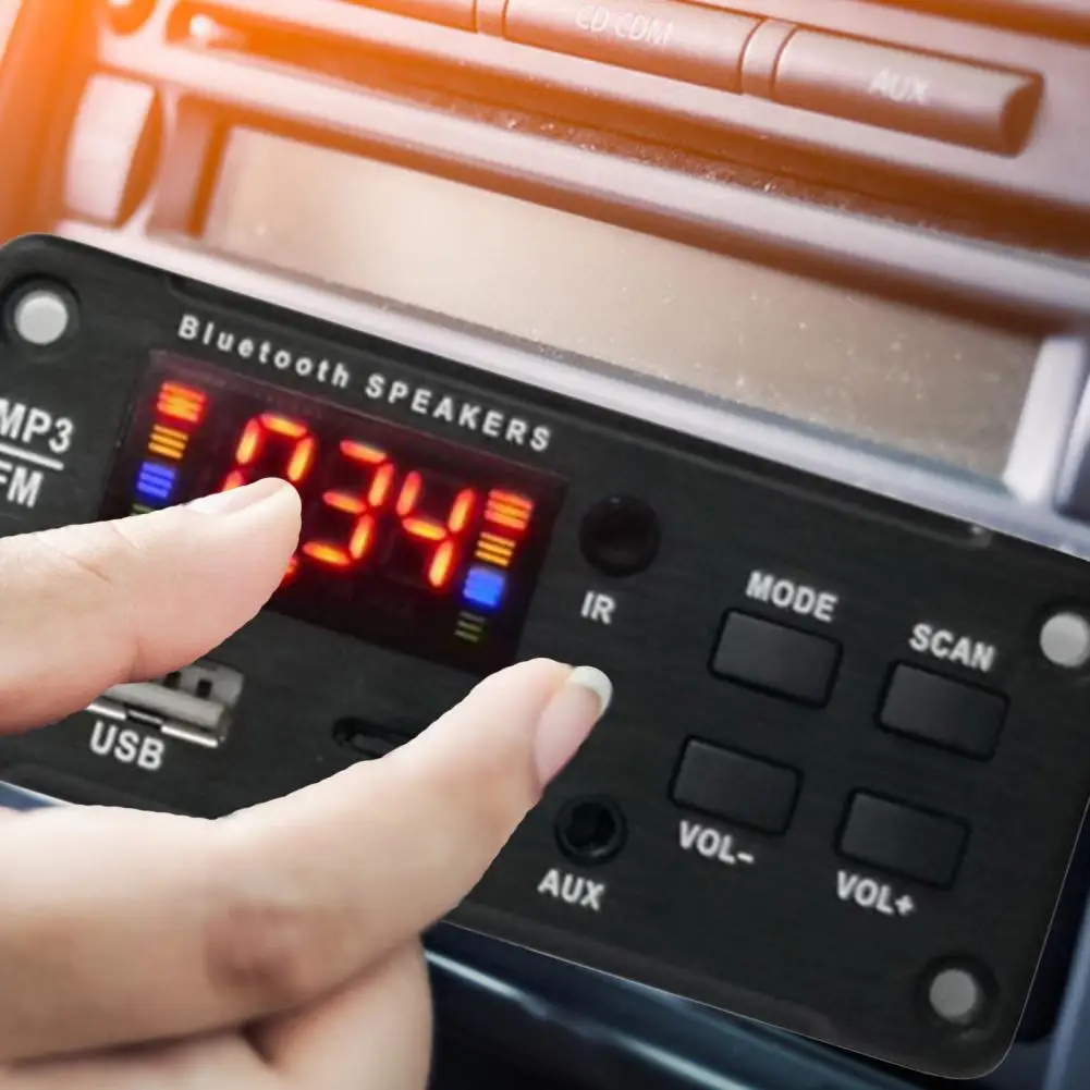 La gran compatibilidad permite al módulo de audio reproducir archivos MP3 desde el disco U, la tarjeta micro-sd y la transmisión de radio.