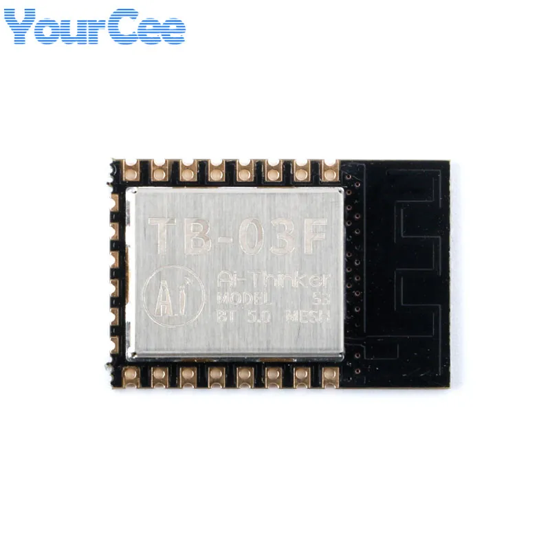 The TB-03F intelligent lighting module is a Bluetooth-compatible module designed based on the TLSR8253 chip and compliant with BT 5.0 low-power Tmall Genie Mesh; the module supports direct control by Tmall Genie, and has the Bluetooth-compatible mesh networking function; For star network communication, Bluetooth-compatible broadcast is used for communication, which can ensure timely response in the case of multiple devices. This module is used in intelligent light control, which can meet the requirements of low power consumption, low delay, and short-range wireless data communication.Parameter:Wireless standard: Bluetooth-compatible 5.0Frequency range: 2400 ~ 2483.5MHzMaximum transmit power: maximum 10dBmReceiving sensitivity: -93dBm±2Interface: GPIO/PWM/SPI/ADC/I2SWorking temperature: -40°C ~ 85 °CStorage environment: -40 °C ~ 125 °C, 90%RHPower supply range: power supply voltage 2.7V~ 3.6V, power supply current ≥50mATransmission distance: Outdoor open viewing distance: 80 meters -150 metersPin description:RST: reset active lowPC4: PWM2 output/UART_CTS, PWM0 reverse output/SAR ADC input/GPIO PC4SWS: Single-wire slave/UART_RTS/GPIO PA7PC3: PWM1 output/UART_RX/I2C serial clock/32kHz crystal input (optional)/GPIO PC3PD7: GPIO PD7/SPI clock (I2C_SCK)PB7: SPI_D0 data output/UART_RX/SAR ADC input/GPIO PB7PB6: SPI_DI data input (I2C_SDA), UART_RTS/SAR ADC input/GPIO PB63V3: power supplyNC: empty pinPA1: GPIO PA1/ I2S_clockPC2: PWM0 output/I2C serial data/32kHz crystal output (optional)/GPIO PC2PB4: PWM4 output/SAR ADC input/GPIO PB4PB5: PWM5 output/SAR ADC input/GPIO PB5NC.: empty pinGND: GroundPD2: GPIO PD2/PWM3 output/SPI chip select (active low)/I2S_LR 17 PD3 GPIOPD3/PWM1 reverse output /I2S_SDIPD4: GPIO PD4/single-wire slave SWM/PWM2 reverse output/I2S_SD0PCI: I2C_CLK/PBI1 reverse output/PWMO output/GPIO PCIPC0: I2C_SDA/PWM4 reverse output/UART_RTS/GPIO PCOPA0: UART_RX/GPIO PAO, PWMO reverse call outputPB1: UART_TX/GPIO PB1/PWM4 output/SAR ADC input