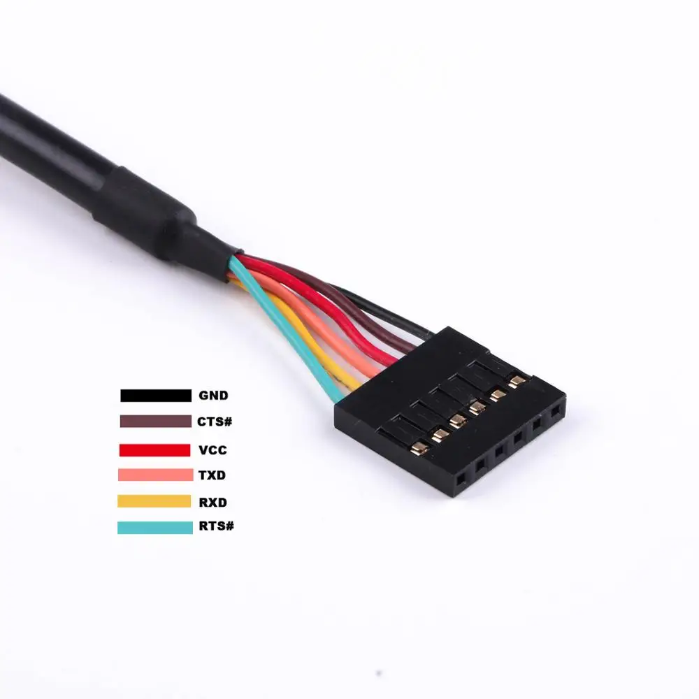 Cada cable tiene 1,8 m/6 pies de largo y admite una velocidad de transferencia de datos de hasta 3 Mbaud (nivel TTL de 3,3 V/5V, pero VCC ambos de 5V)